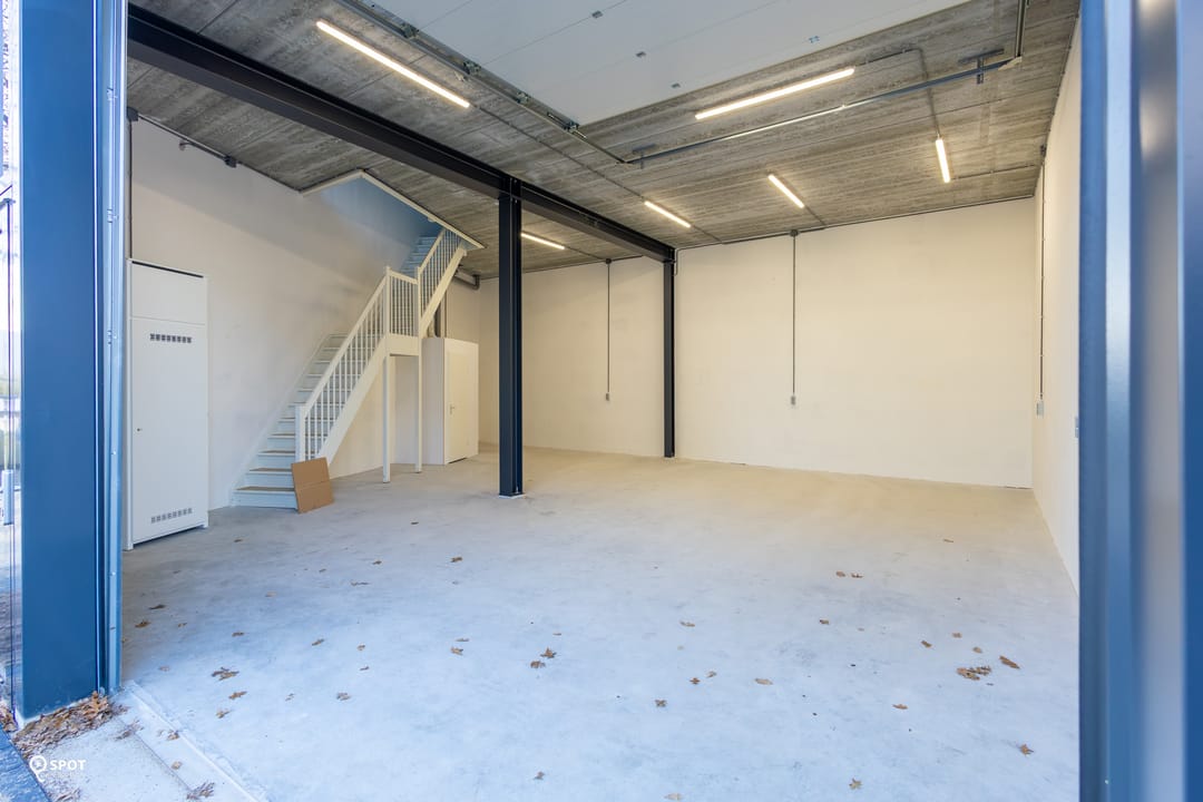 - Overheaddeuren, krachtstroom, betonvloer, toilet, airconditioning en te openen ramen
