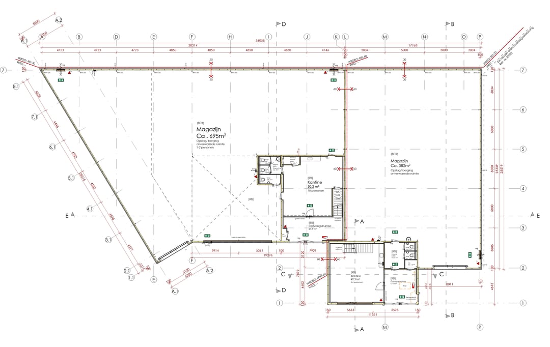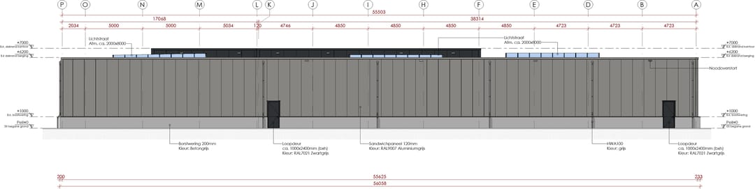 - Lichtstraten, overheaddeuren, krachtstroom, betonvloer, inbouwarmaturen en te openen ramen