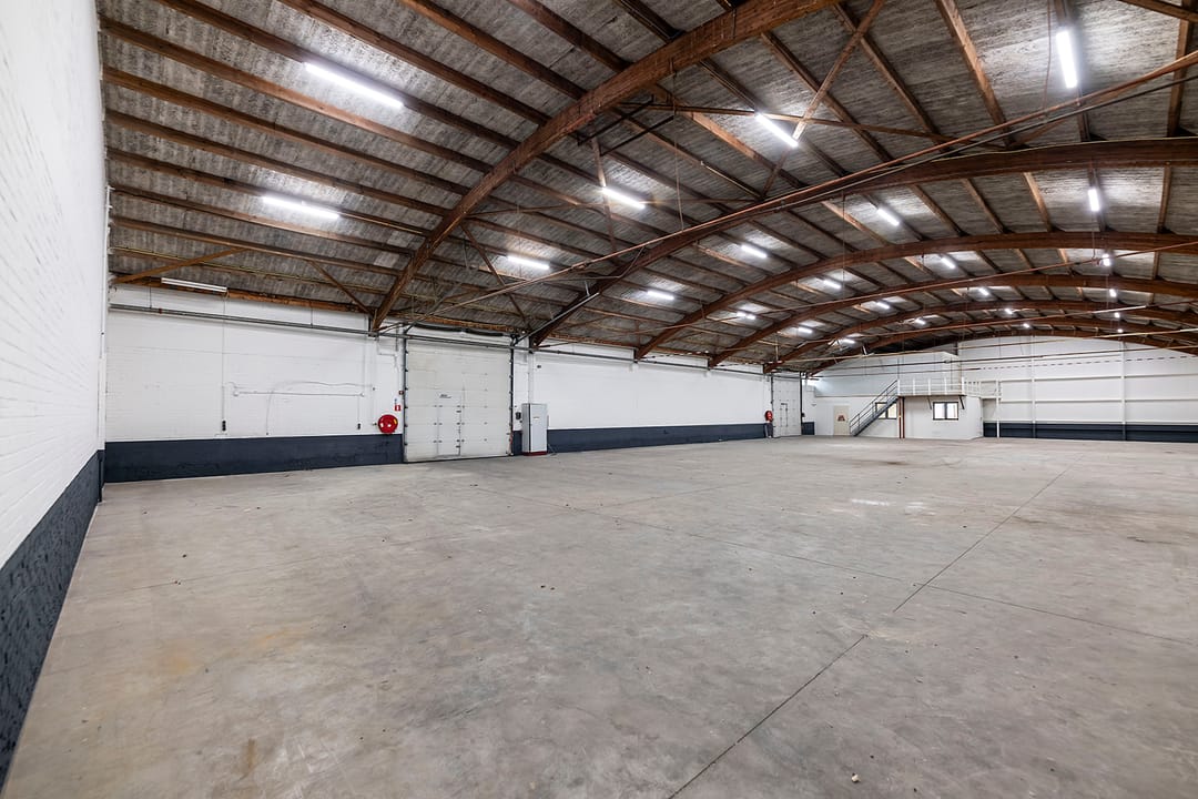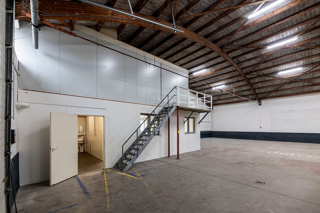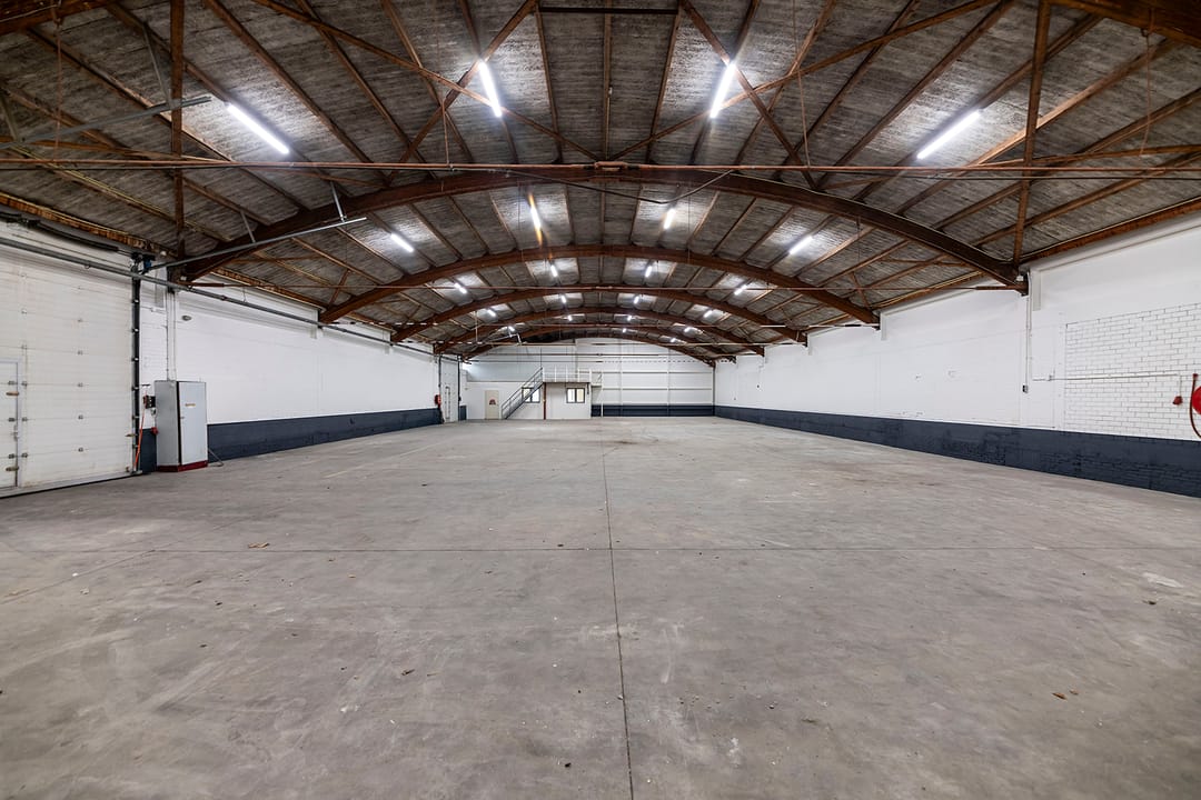- Overheaddeuren, krachtstroom, betonvloer en te openen ramen