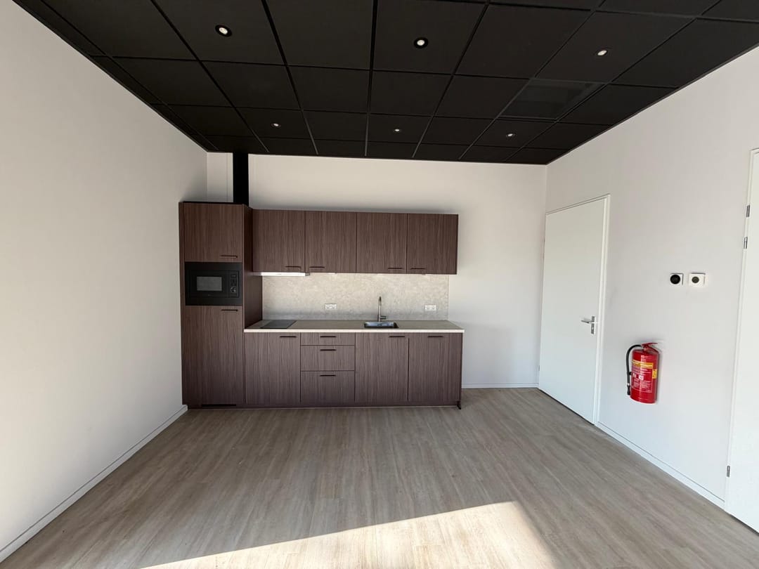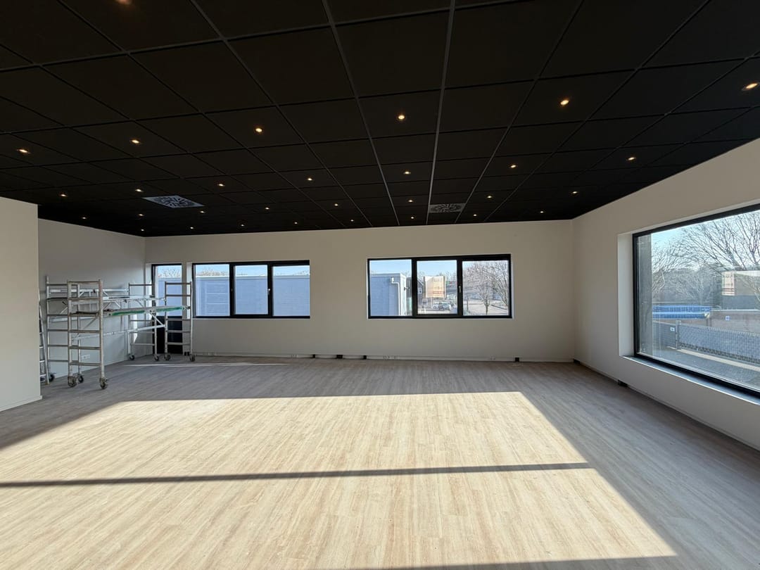 - Kantoorruimte voorzien van zwart systeemplafond met inbouwspots