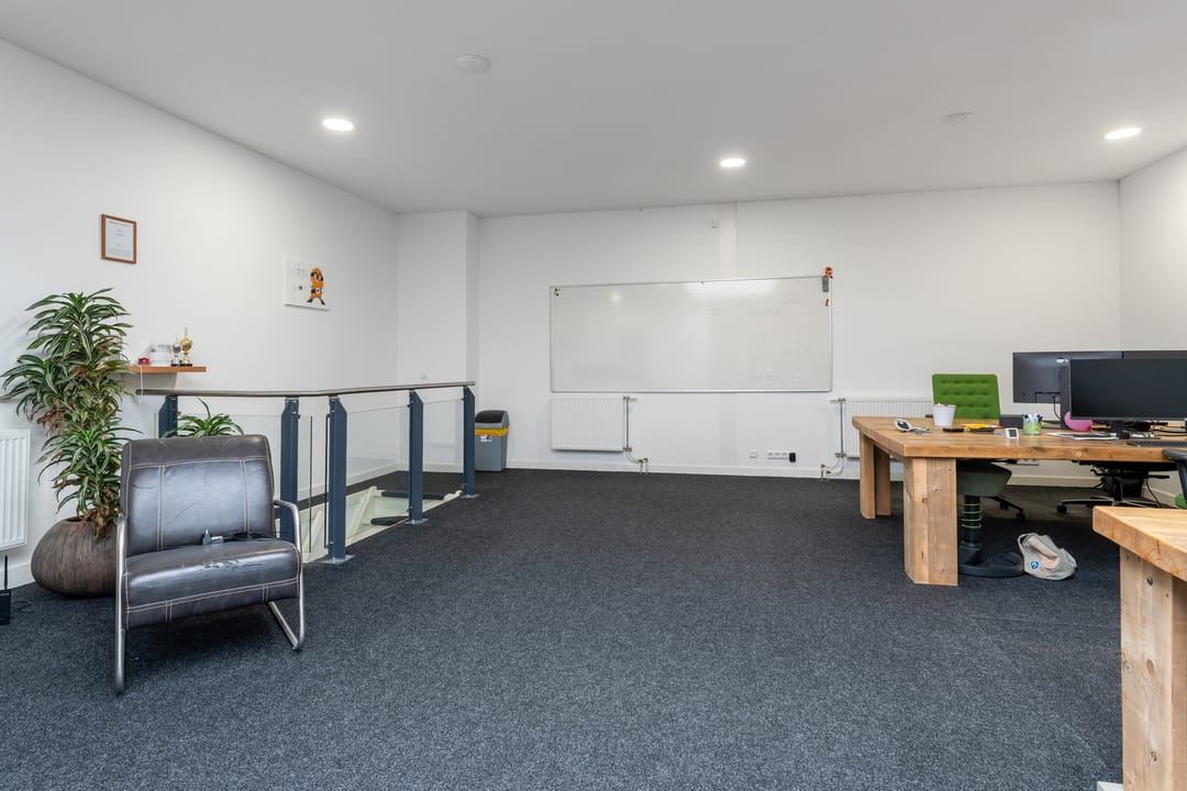 De ruimte is luxe afgewerkt en ingericht en omvat een combinatie van bedrijfs-, showroom- en kantoorruimte op de begane grond en kantoorruimte op de eerste verdieping.