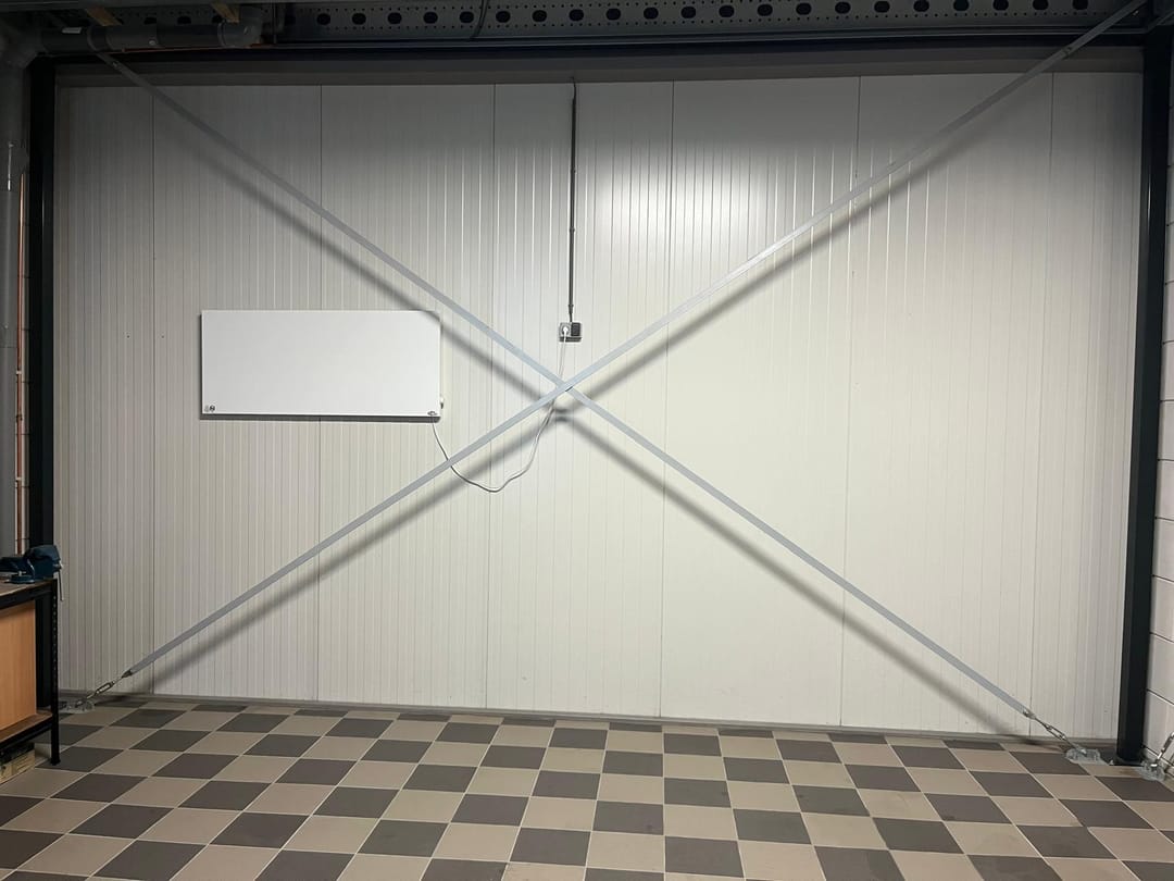 De begane grond is praktisch en hoogwaardig afgewerkt met een volledig betegelde vloer. Verder beschikt de ruimte over een watertappunt met wastafel, een ruime sectionaaldeur geschikt voor bestelauto’s, een separate loopdeur en krachtstroom in de meterkast. Langs de wanden zijn extra stopcontacten aangebracht. Bij de werkbank is een elektrisch warmtepaneel geplaatst voor aangenaam werken.