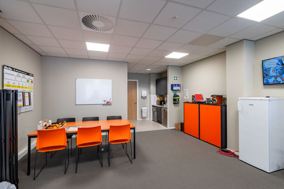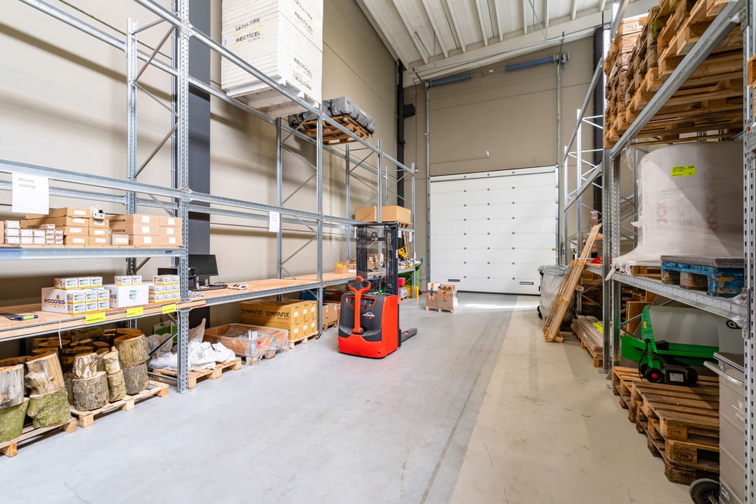 - Lichtstraten, overheaddeuren, krachtstroom, betonvloer, heater, toilet, pantry, airconditioning, mechanische ventilatie en inbouwarmaturen