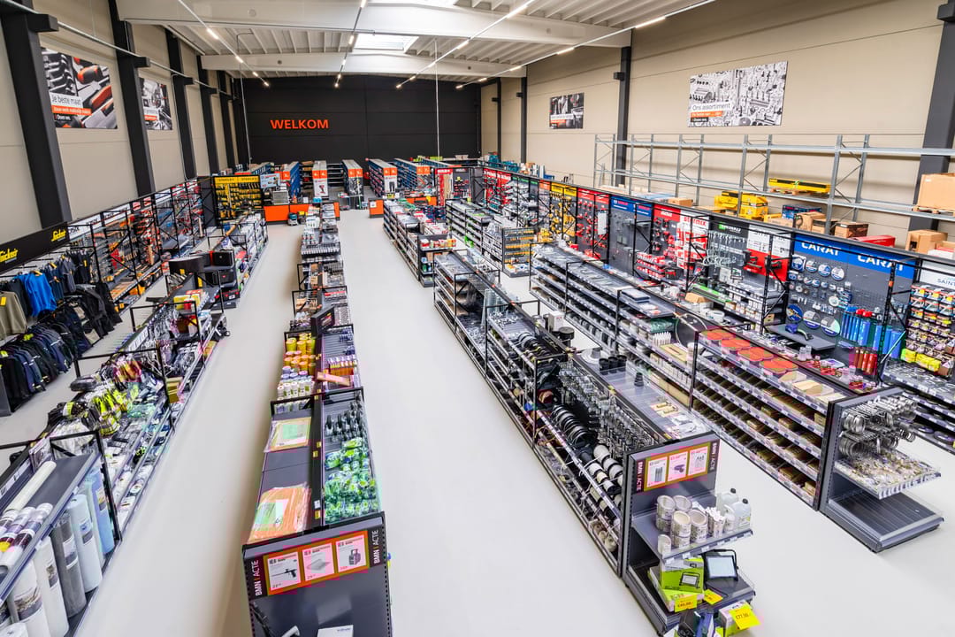 - elektrisch bedienbare overheaddeur van 4,5 meter breed en 4,5 meter hoog;