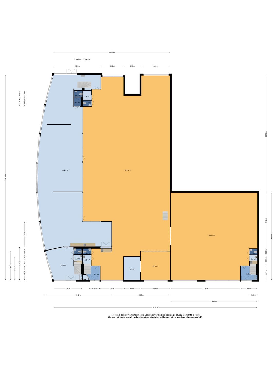 De oppervlakten zijn zo zorgvuldig mogelijk vastgesteld, doch mogen niet worden aangemerkt als zuivere verhuurbare oppervlakte volgens de Nederlandse Eenheids Norm NEN 2580.