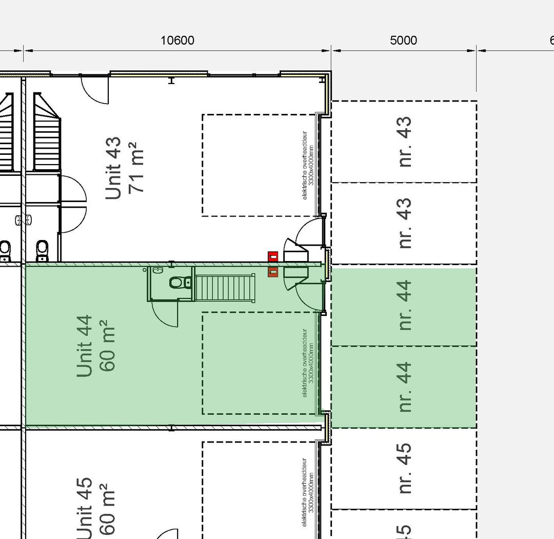 - Overheaddeuren, betonvloer en toilet