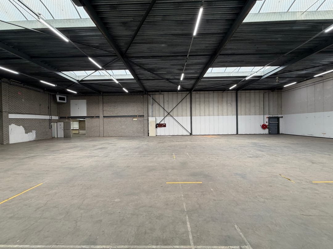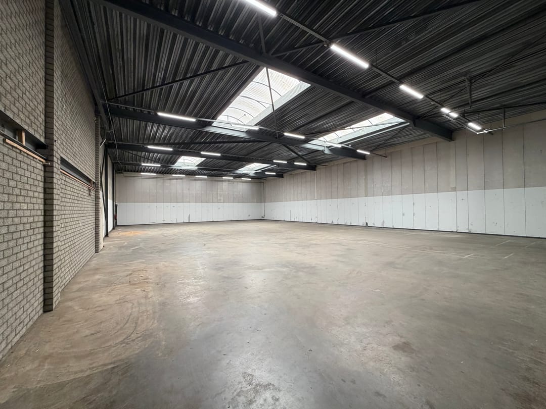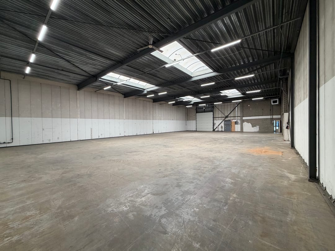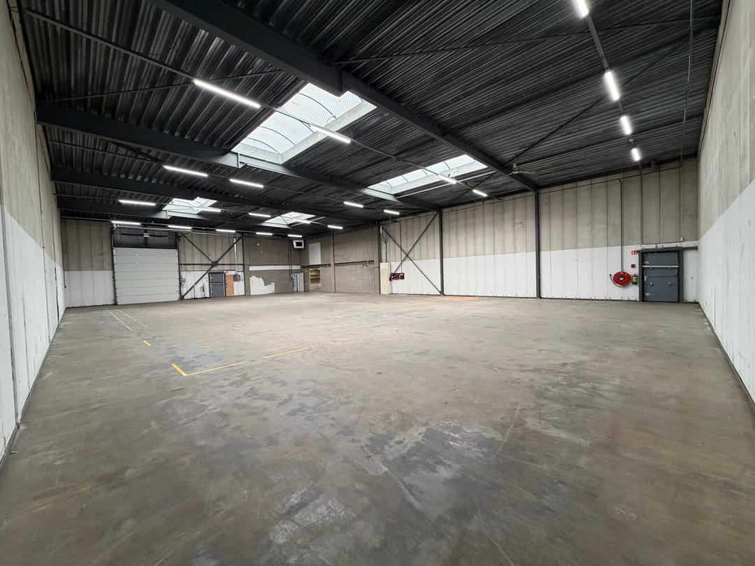 - Overheaddeuren, betonvloer, toilet, pantry, inbouwarmaturen en te openen ramen