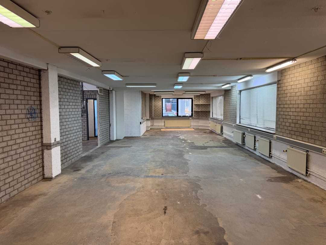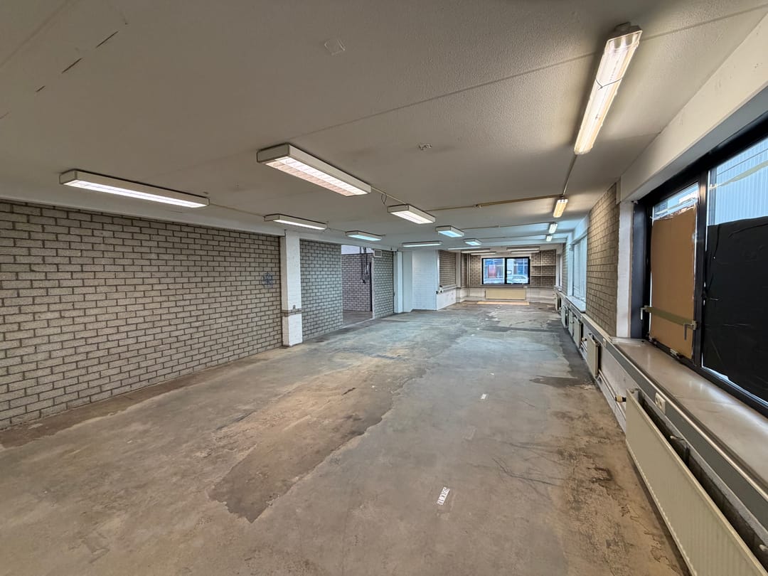 Ca. 200 m² BVO opslagruimte/werkplaats verdeeld over de begane grond en 1e verdieping;