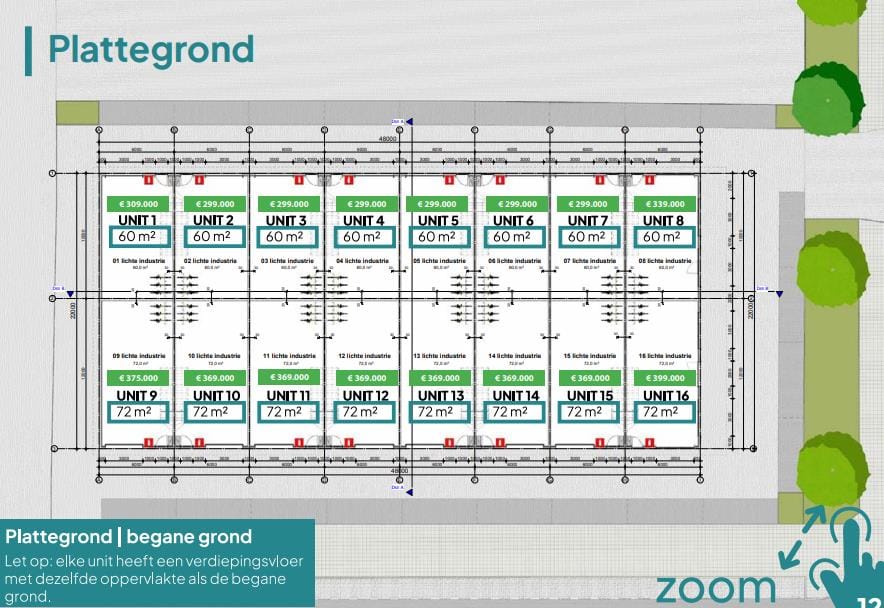 Op een strategische locatie in Rotterdam worden hoogwaardige nieuwbouw bedrijfsunits gerealiseerd. De units worden casco opgeleverd en zijn flexibel in te delen, in afmeting variërend vanaf circa 120 m² bruto vloeroppervlak. De prijs van een unit van 120 m² begint vanaf € 299.000,- V.O.N. De nieuwe erfpacht regeling is van toepassing en het erfpachtrecht is eeuwigdurend afgekocht.