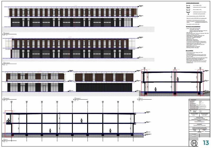 • De units hebben een constructie van kalkzandsteen en staal, ook de unitscheidende wanden zijn van kalkzandsteen. De gevels worden afgewerkt met sandwichpanelen met een hoge isolatiewaarde;