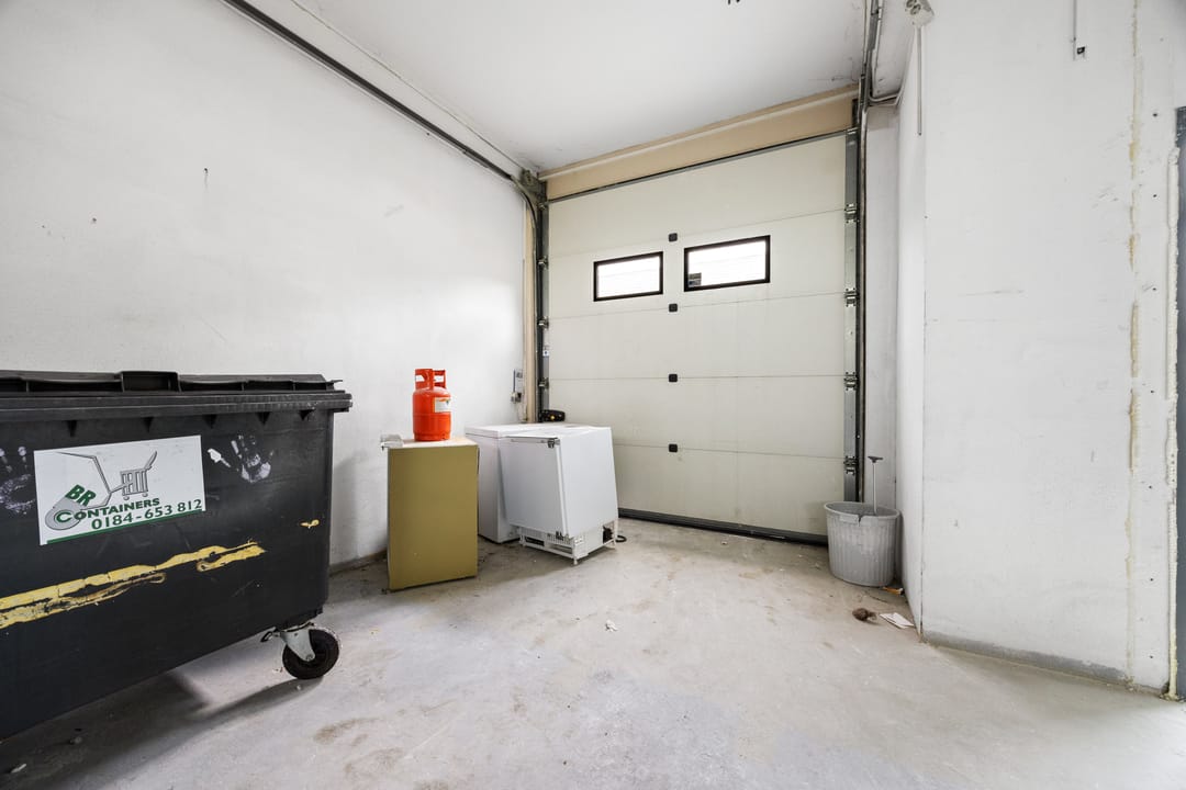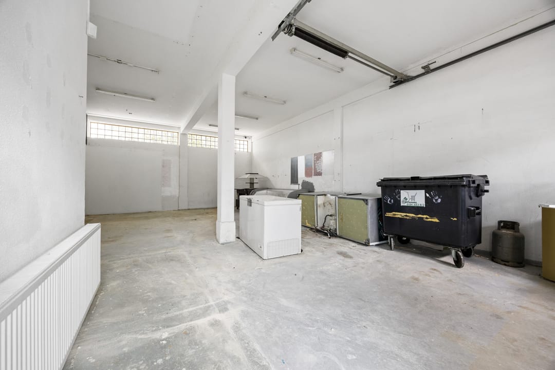 Per direct beschikbaar! Bedrijfsruimte met overheaddeur en bovengelegen kantoorruimte op slechts enkele minuten rijden van de A20.