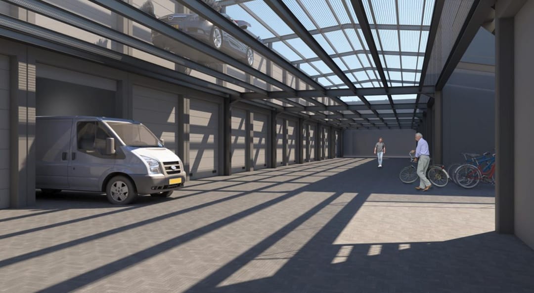 Nu voor verkoop beschikbaar, deze opslag-/ garagebox deel uitmakend van project “LaneParc”. Dit project is gerealiseerd in Rotterdam aan de Arthurweg in de wijk Oud-IJsselmonde. Dit project omvat in totaal 59 opslagboxen: 29 op de begane grond en 30 op de via een hellingbaan bereikbare verdieping. De binnenwerkse hoogte van de boxen bedraagt circa 3,1 meter. Op de begane grond is een gemeenschappelijke box ingericht met een dubbel toilet, een technische ruimte met o.a. de tussenmeters voor elektraverbruik en een schoonmaak-/ werkkast.