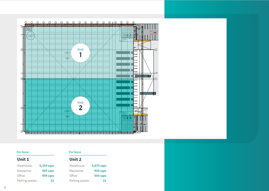 - Loading docks, krachtstroom, betonvloer, sprinkler, heater, toilet en pantry