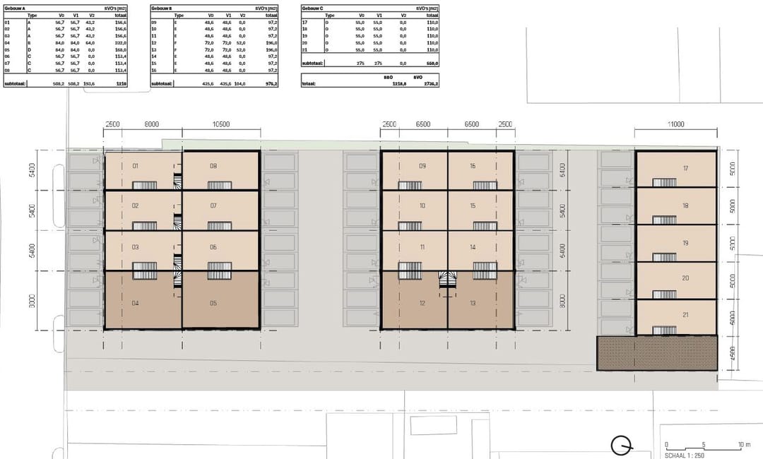 • Units zijn gelegen op eigen grond;