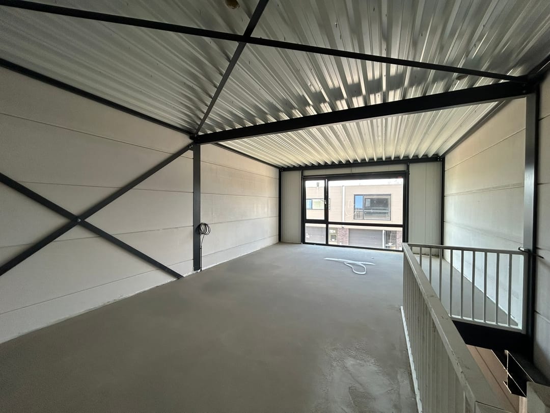 • Extra hoogte: totale gebouw hoogte 8,5 meter, onderkant vloer ca. 4,7 meter.