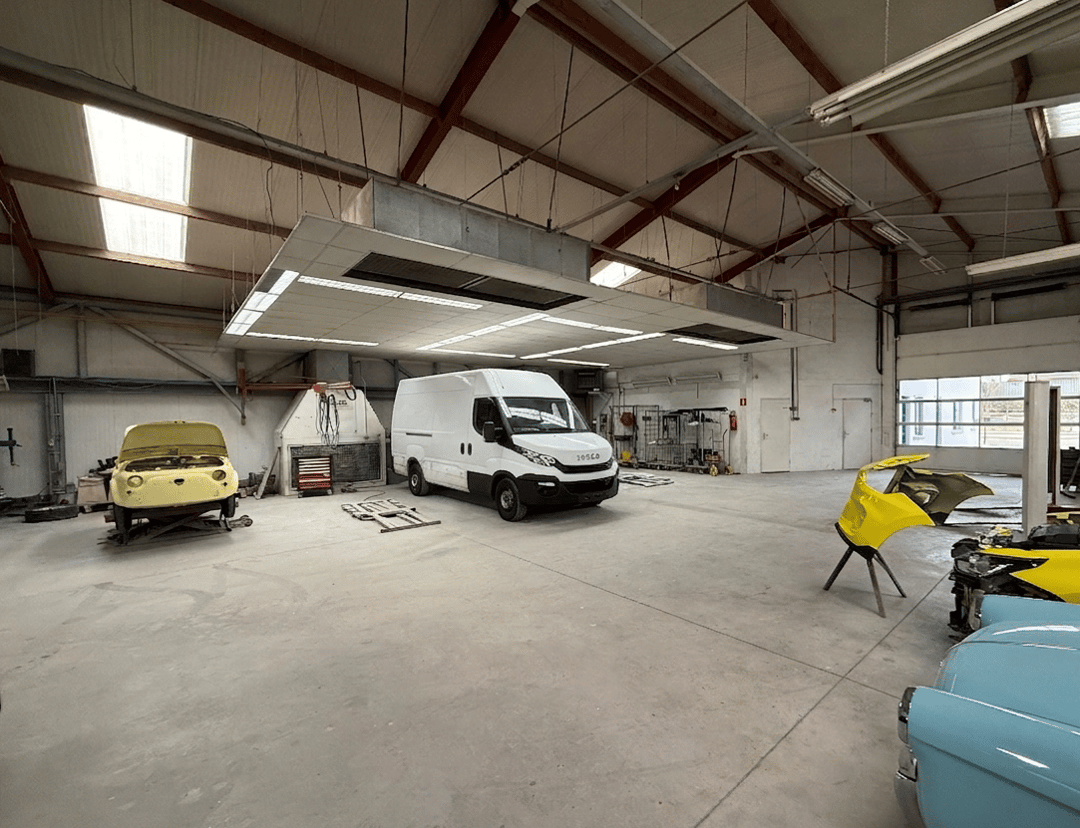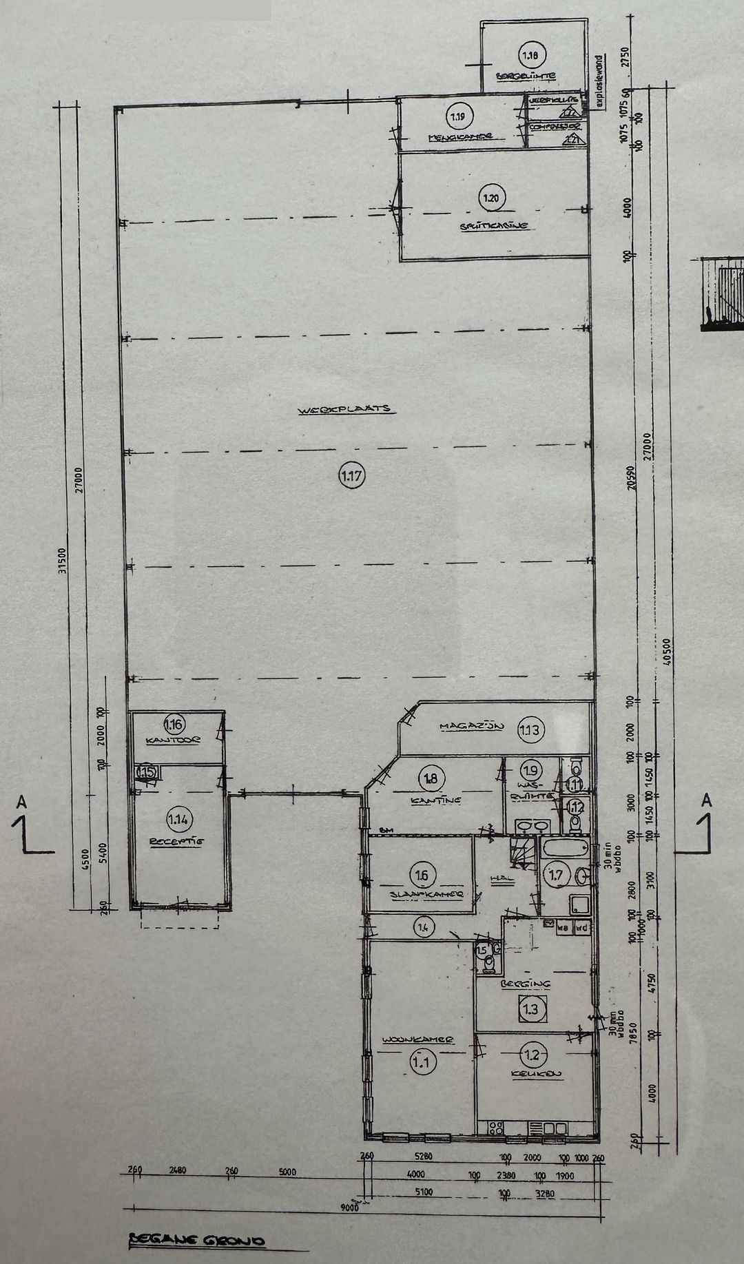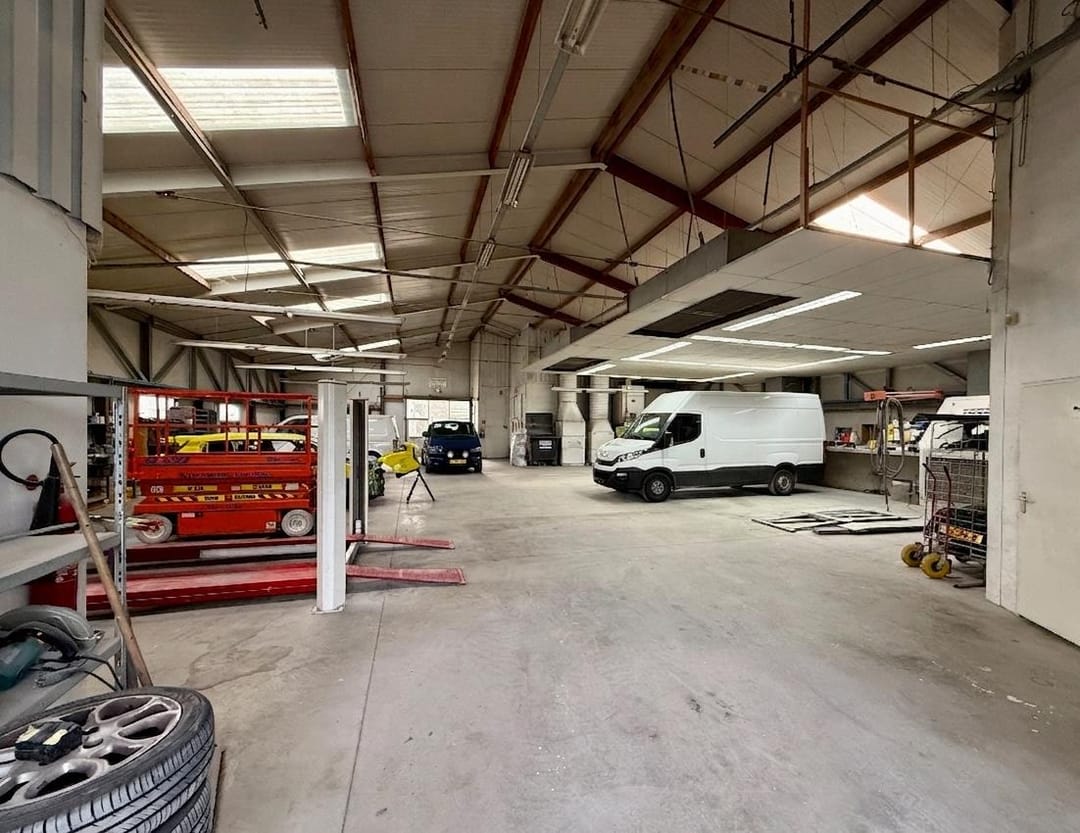De bedrijfsruimte is ca. 485 m2 groot, bestaande uit een receptie met balie, kantoor, werkplaats, opslagruimte, toiletruimte en kantine met pantry. Het geheel is functioneel van opzet doch eenvoudig afgewerkt.