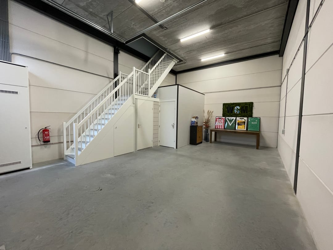 Via de houten trapopgang is de representatieve kantoorruimte bereikbaar, welke volledig turn-key is ingericht met een ontvangst/kantineruimte en een kantoorruimte aan de voorzijde. De verdieping is meer ingericht met de volgende voorzieningen: