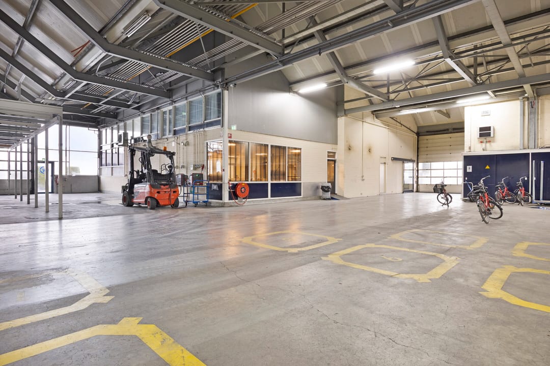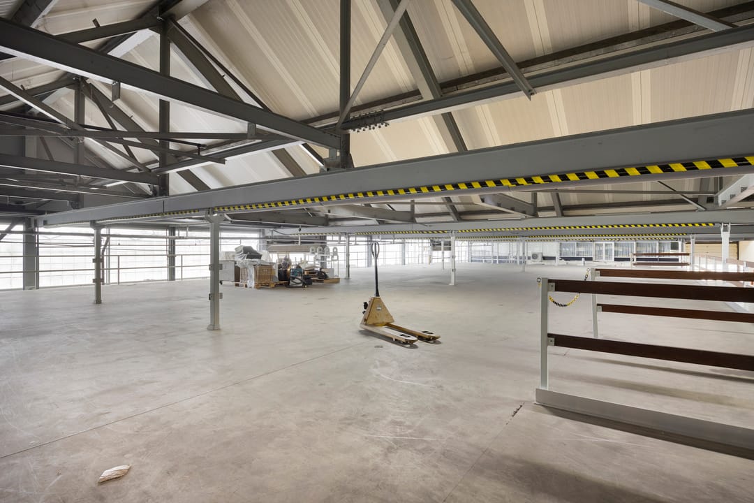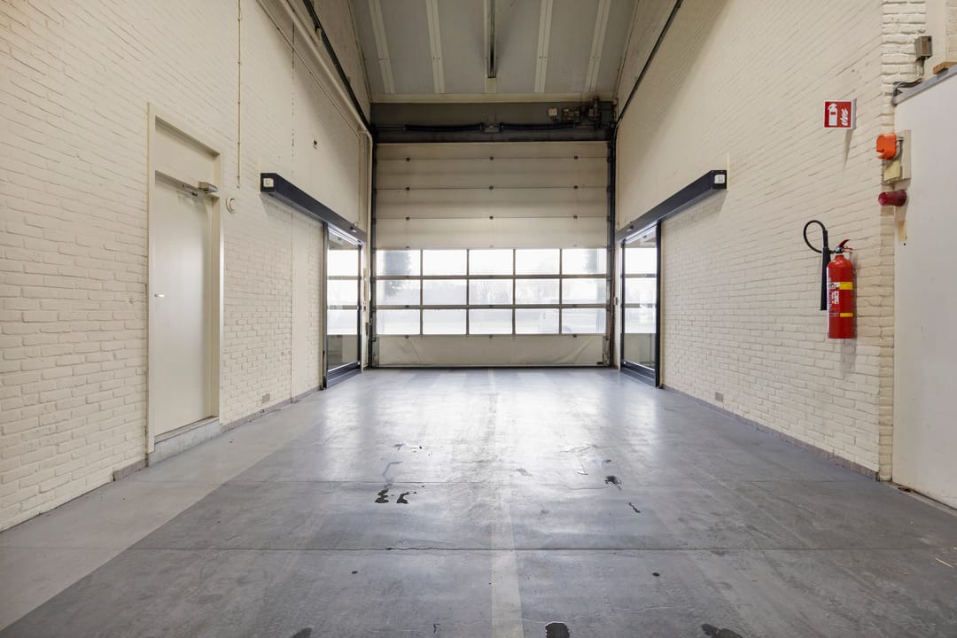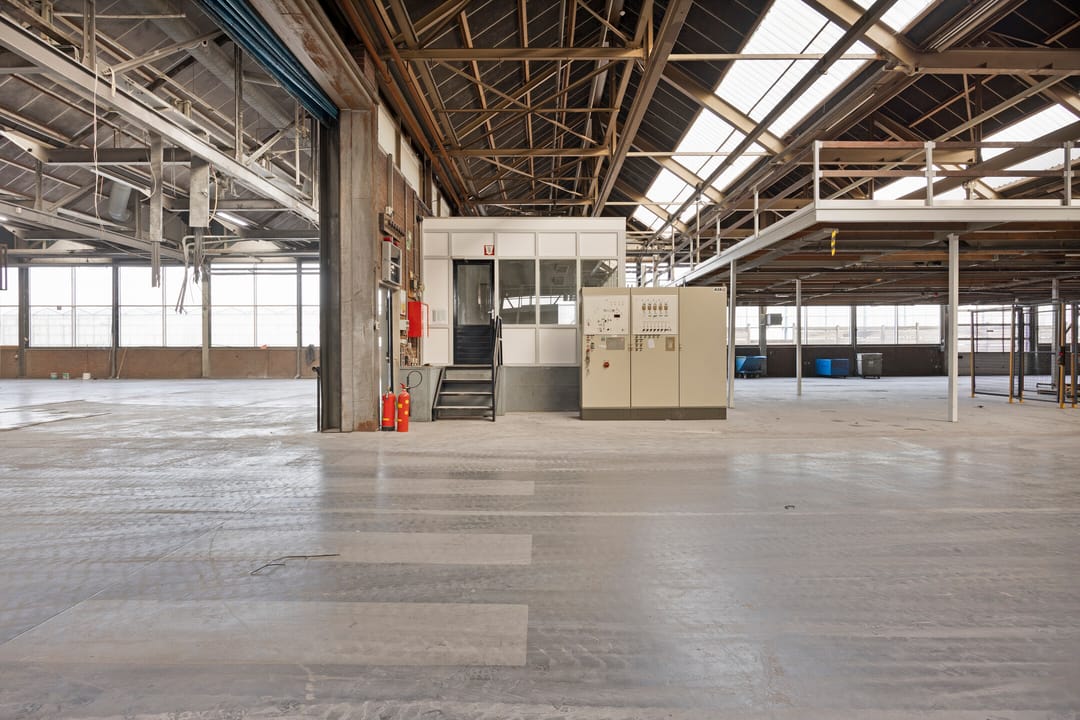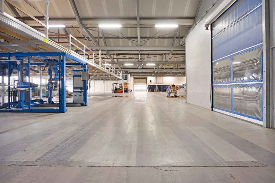 - Lichtstraten, overheaddeuren, betonvloer, heater, toilet, pantry en inbouwarmaturen