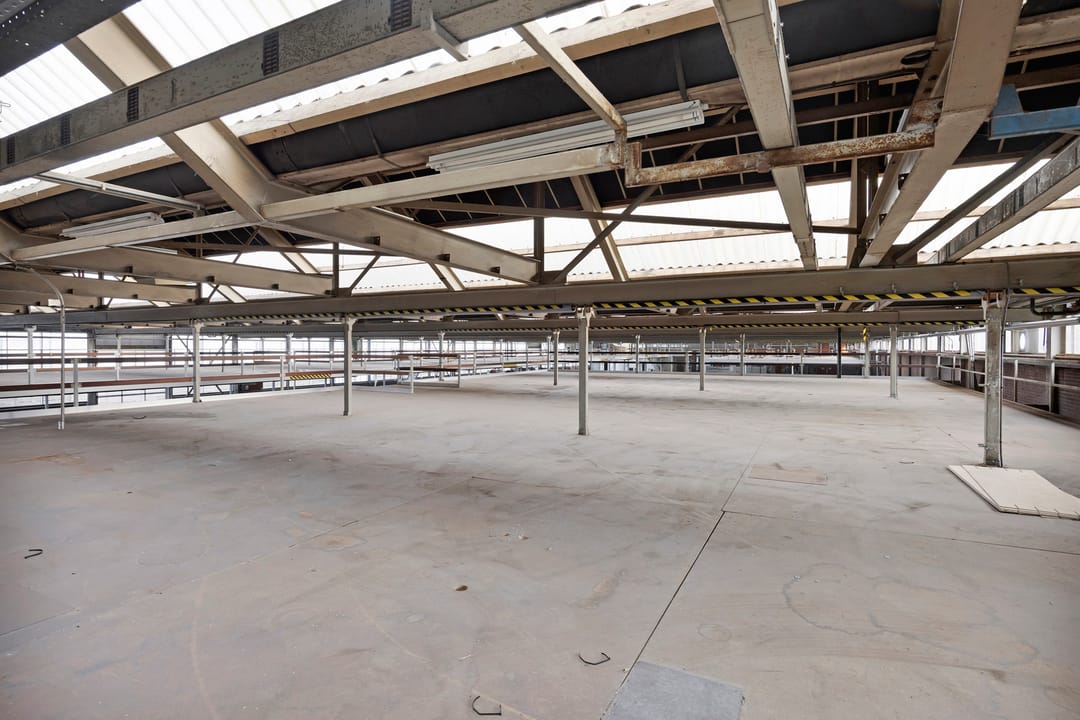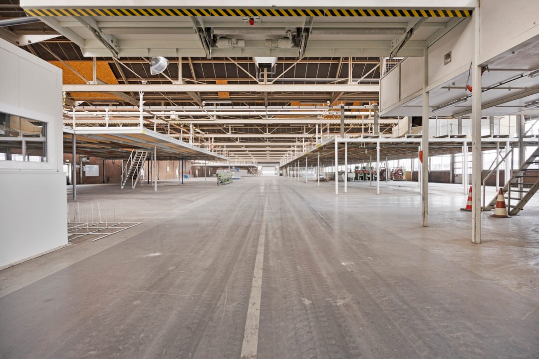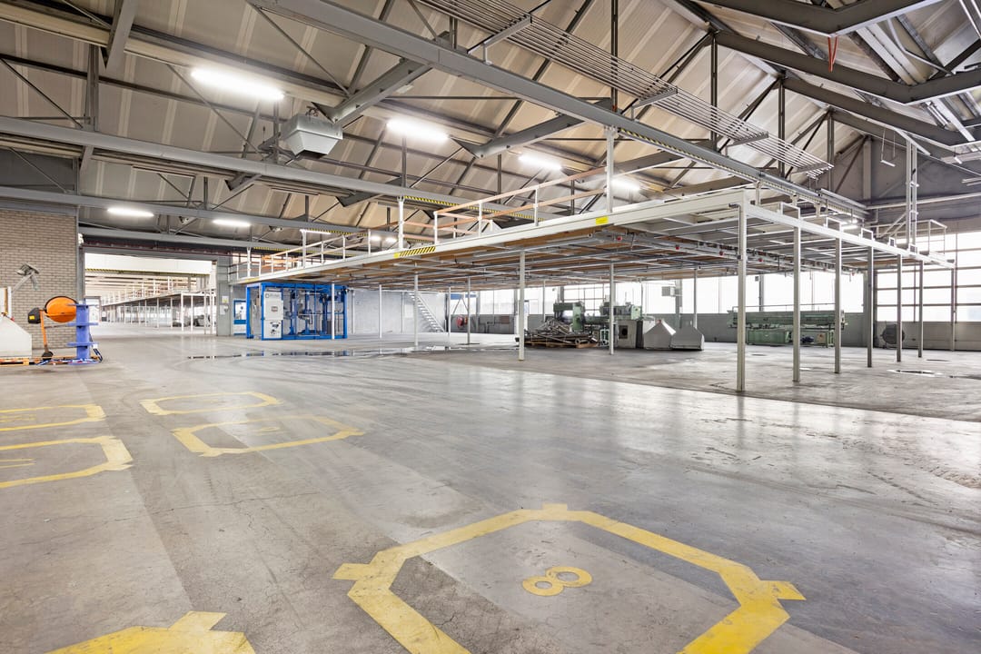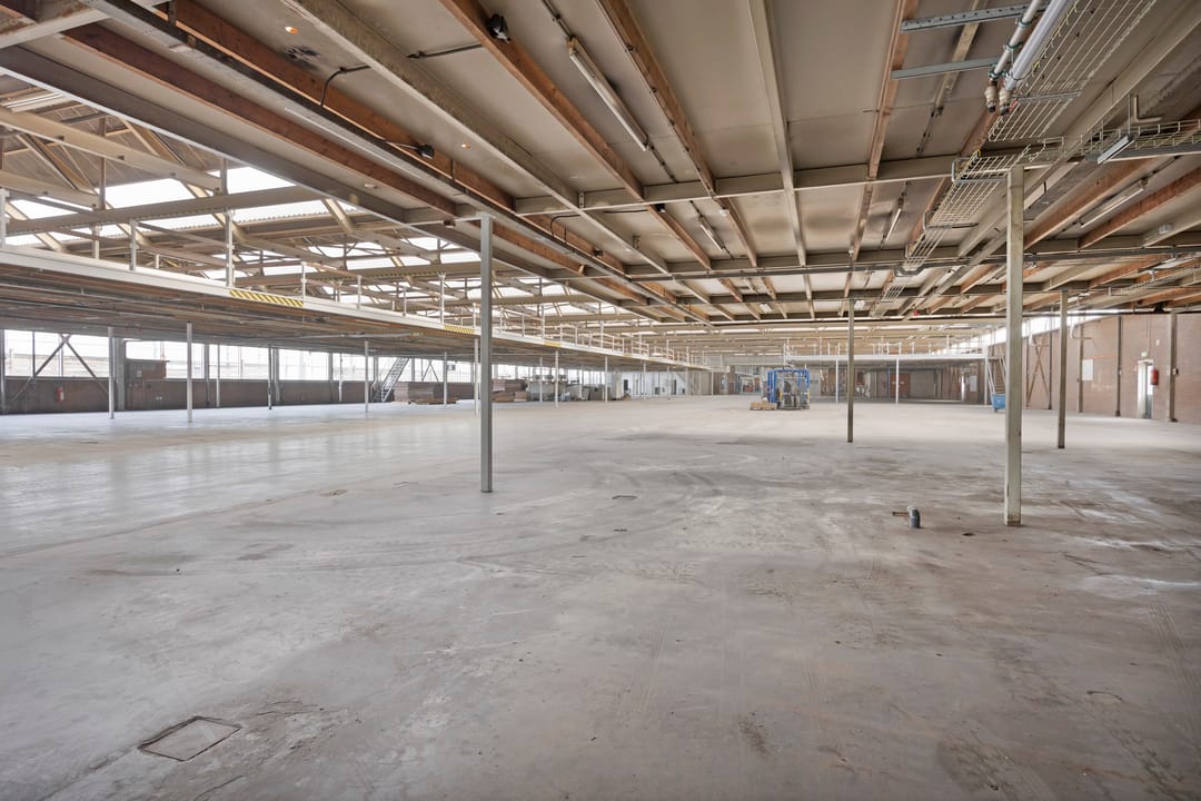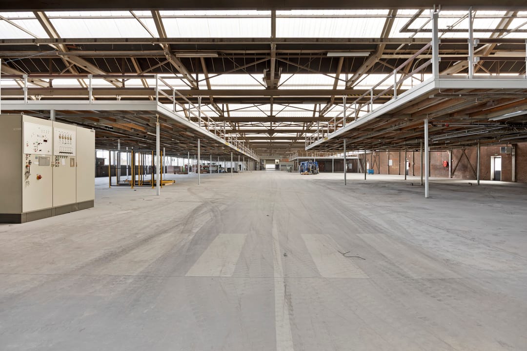 - Lichtstraten, overheaddeuren, betonvloer, heater, toilet, pantry en inbouwarmaturen