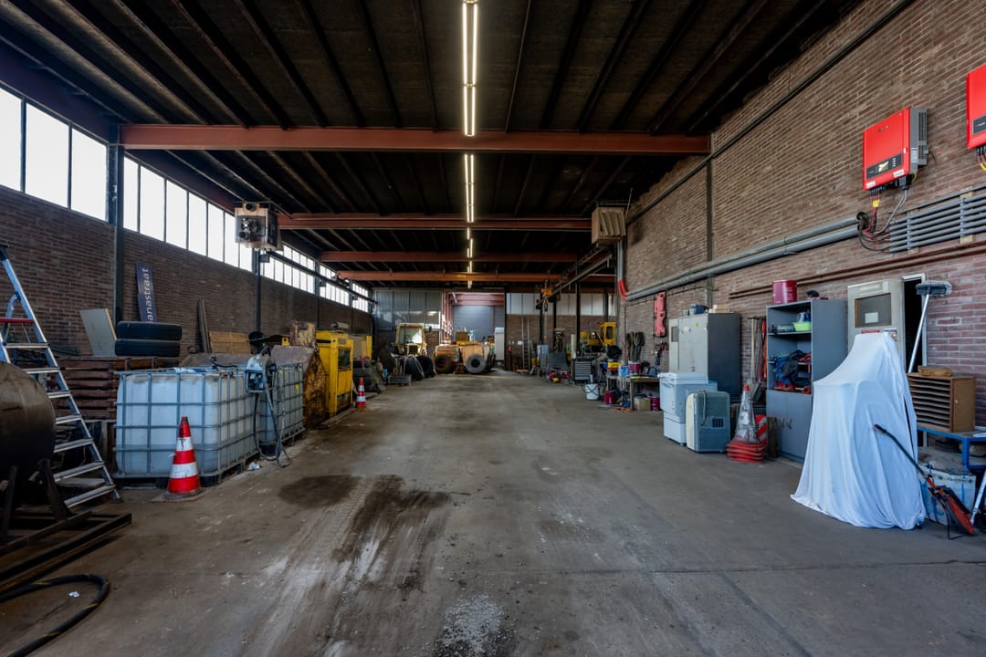 De bedrijfshal is voorzien van lichtstraten en een bovenloopkraan.