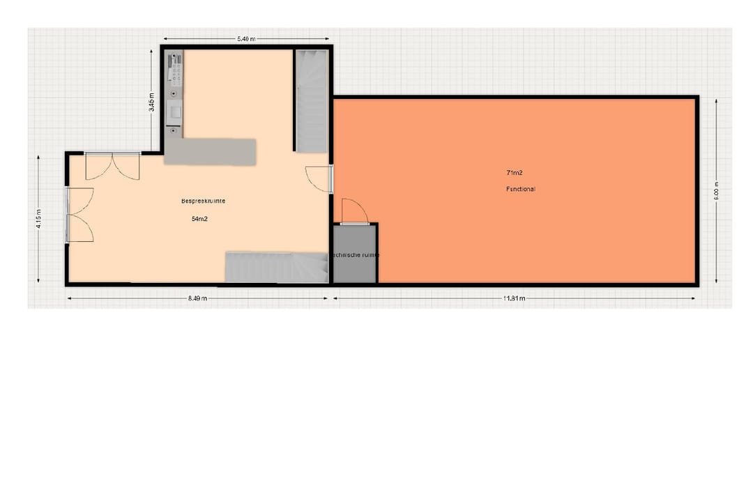 Kantoorruimte eerste verdieping: circa. 54 m2
