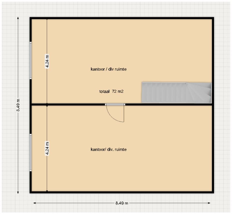 Kantoorruimte tweede verdieping: circa. 72 m2