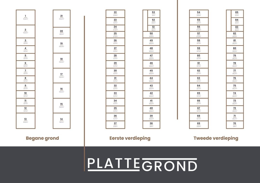 - 63 m² (in units vanaf 18 m²)