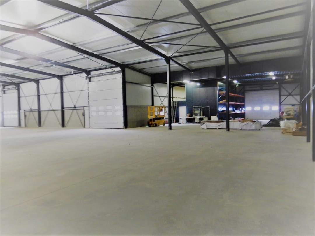 Hal met 3 overheaddeuren, gladde betonvloer, ledverlichting, goede isolatie en parkeren op eigen terrein. Milieu categorie 2 en eventueel ontheffing voor categorie 3.1 en 3.2. Detailhandel niet toegestaan.