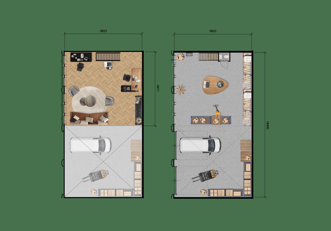 bedrijfsruimtes die er meer dan goed uitzien. Ze worden casco opgeleverd en beschikken over een verdieping, zodat u ze naar wens kunt indelen. Businesspark De Weverij straalt passie en professionaliteit uit. Dat straalt af op uw bedrijf. De bedrijfsruimtes hebben een bruto vloeroppervlakte tussen de ca. 97,2 m2 tot 294 m2. Naar wens kunnen meerdere bedrijfsruimtes worden samengevoegd, zodat een groter vloeroppervlak ontstaat. Alle ruimtes zijn voorzien van een vaste trap richting de verdiepingsvloer en toegankelijk via een loopdeur en een (nog aan te sluiten) elektrische bedienbare overheaddeur.