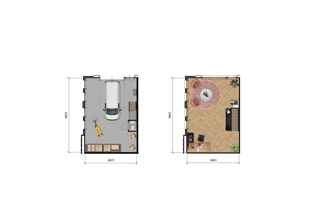 Oppervlakte van 279 m2 met zeven eigen parkeerplaatsen.