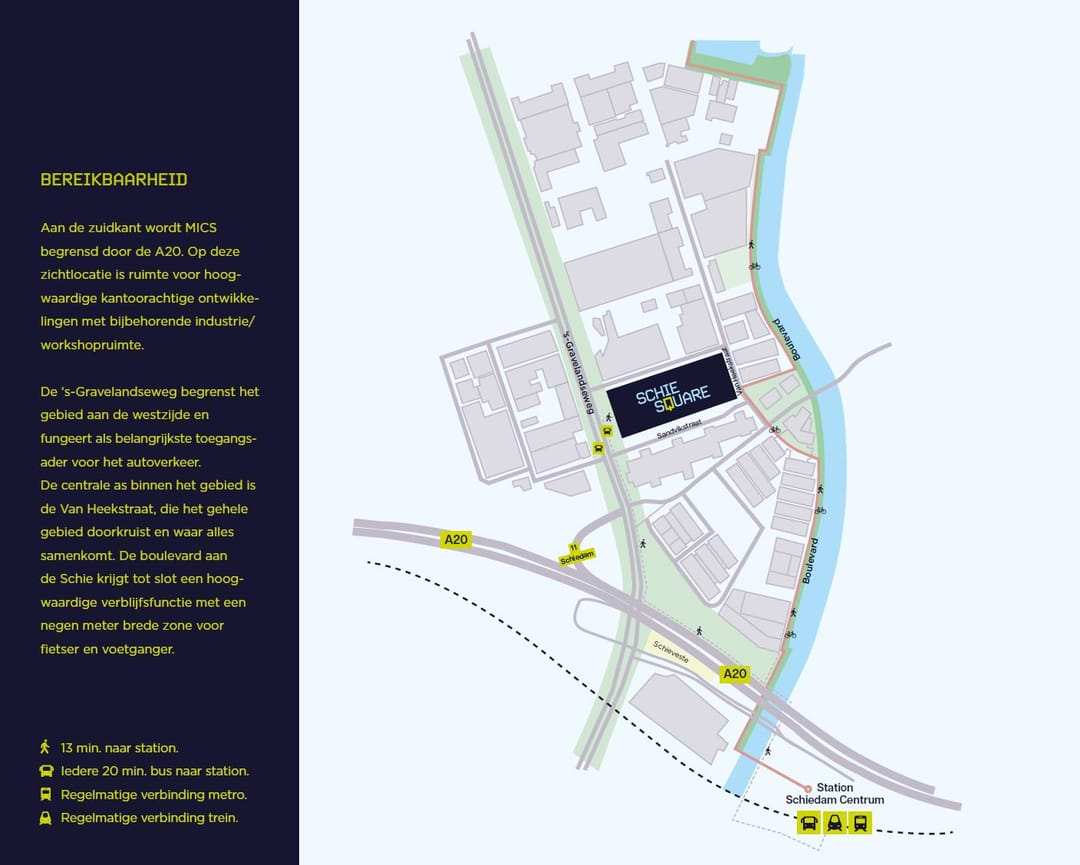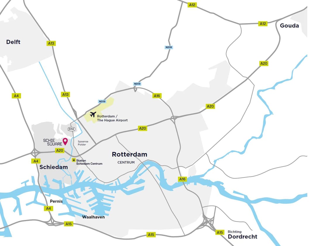 - uitstekende ligging nabij snelweg A20 en NS-/metrostation Schiedam Centrum