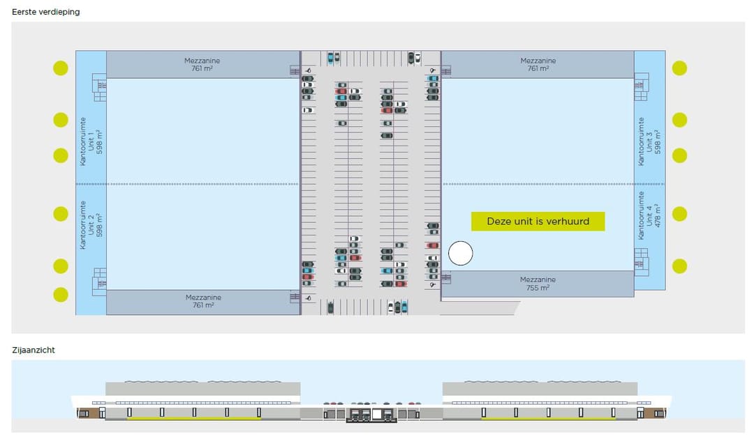 - elke unit heeft 2 loading docks met docklevellers en 2 deuren op maaiveld niveau