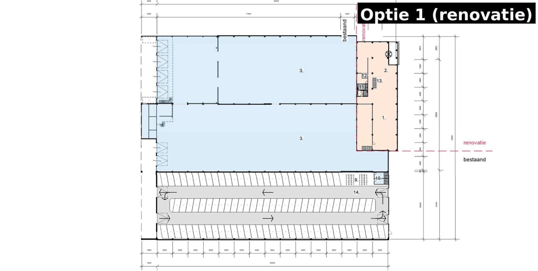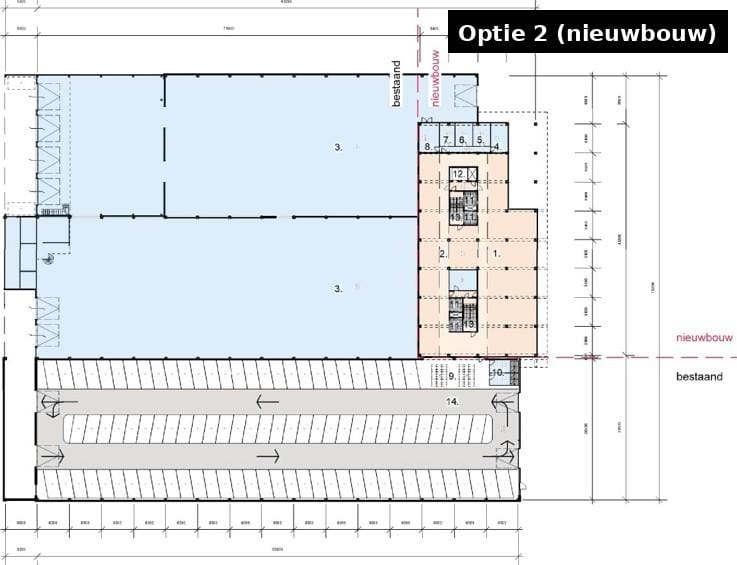 - kantoorruimte: ca. 1.150 m² v.v.o. (optioneel uit te breiden tot ca. 2.995 m2 v.v.o., zie Optie 2)
