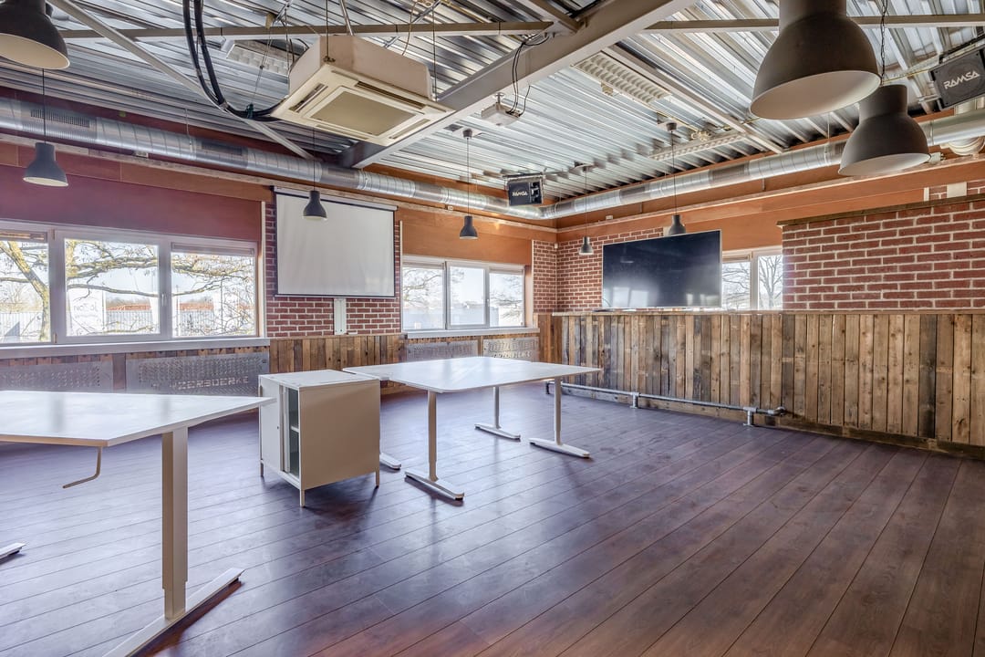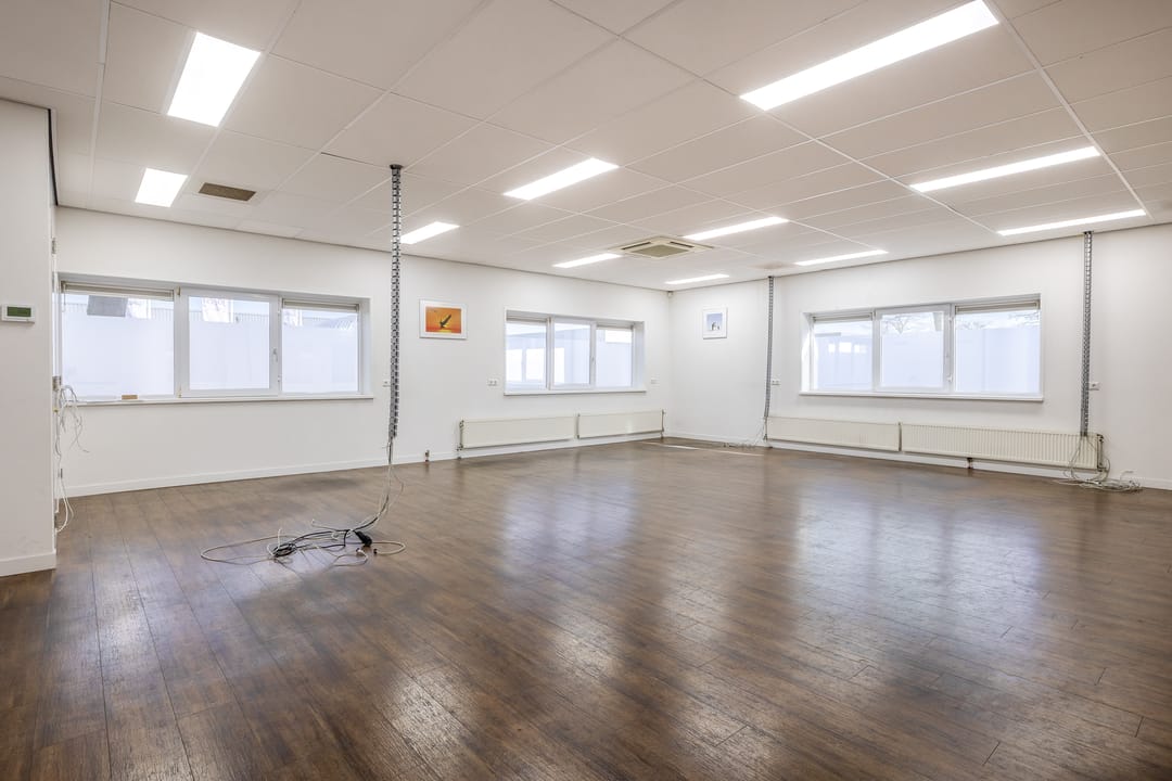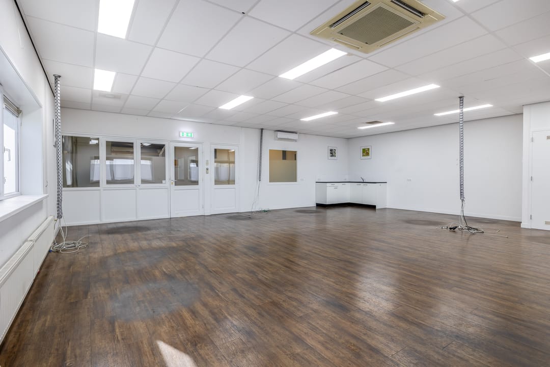 - Airconditioning, mechanische ventilatie, overheaddeuren, krachtstroom, betonvloer, heater, toilet, pantry en te openen ramen