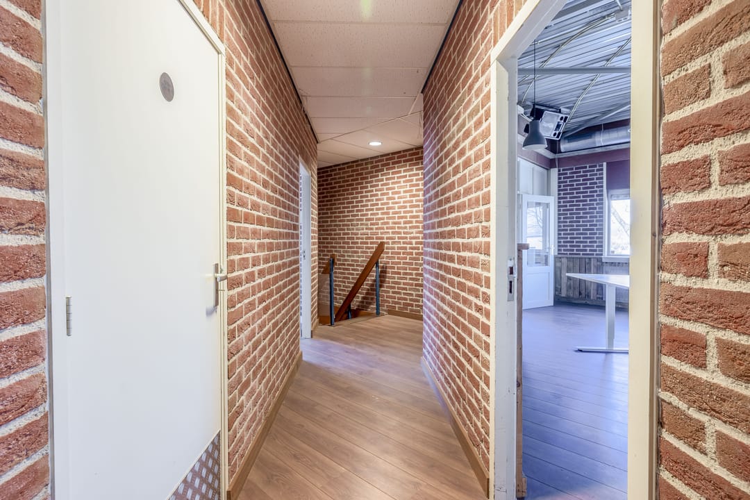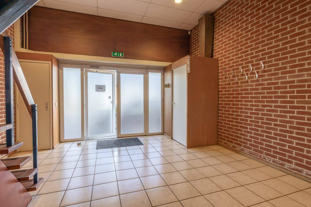 Bij binnenkomst via de hoofdentree wordt u verwelkomd in een ruime hal met een nette tegelvloer. Vanuit hier bereikt u middels de houtentrap de eerste verdieping. Tevens bevinden zich bij de entree een toiletgroep en de directe toegang tot de bedrijfsruimte. Vanuit de bedrijfsruimte zijn twee ruime kantoorruimtes toegankelijk, beide zijn voorzien van een systeemplafond met verlichting en airconditioning.