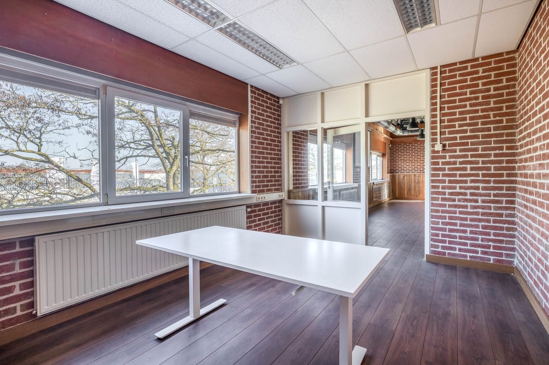 De eerste verdieping is zowel via de entree als via een trap in de bedrijfsruimte bereikbaar. Hier bevinden zich twee afzonderlijke kantoorruimtes, elk afgewerkt met een laminaatvloer, schoonmetselwerk wanden, te openen ramen en een systeemplafond. Daarnaast beschikt deze verdieping over een royale kantoorruimte die tevens uitstekend kan fungeren als kantine. Deze ruimte is eveneens afgewerkt met een laminaatvloer, schoonmetselwerk wanden en voorzien van een aircosysteem.