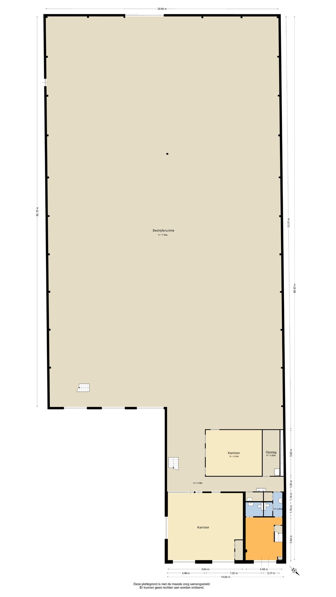 De bedrijfsruimte heeft een vrije hoogte van maar liefst 7,78 meter, ideaal voor uiteenlopende bedrijfsactiviteiten en optimale opslagmogelijkheden. De ruimte is voorzien van drie overheaddeuren, waarvan de grootste elektrisch bedienbaar is voor extra gebruiksgemak. De twee overige overheaddeuren zijn handmatig te bedienen en bieden bovendien de mogelijkheid tot het realiseren van een laaddock, wat de logitieke flexibiliteit vergroot.