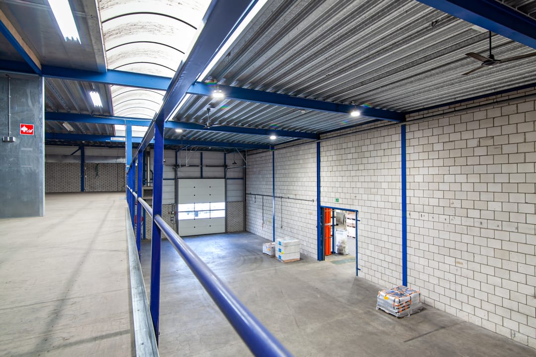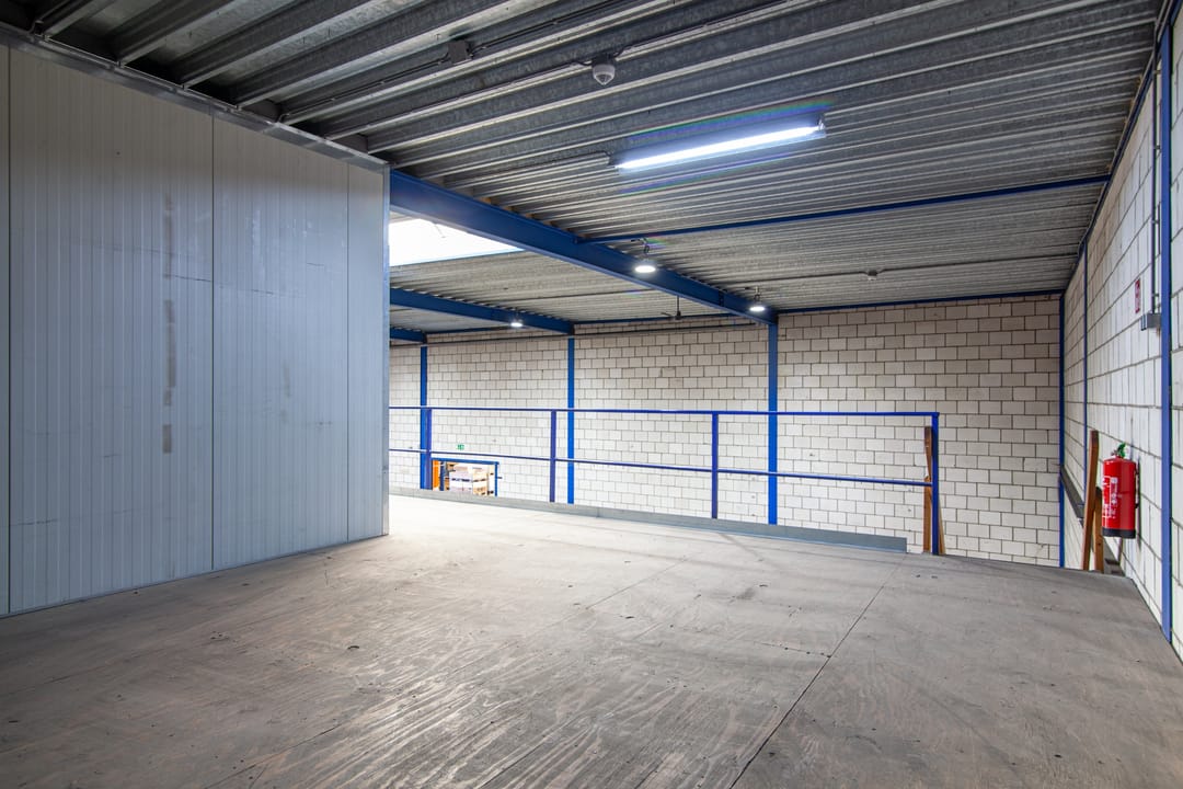 De bedrijfsruimte is praktisch ingericht met een vrije hoogte van circa 6 meter, voorzien van een entresolvloer, een glad afgewerkte betonvloer en een ruime overheaddeur voor optimale toegankelijkheid. Dankzij de aanwezige voorzieningen, zoals krachtstroom, TL-verlichting, verwarming, keuken en sanitaire voorzieningen, is de unit direct gebruiksklaar voor uiteenlopende bedrijfsactiviteiten.