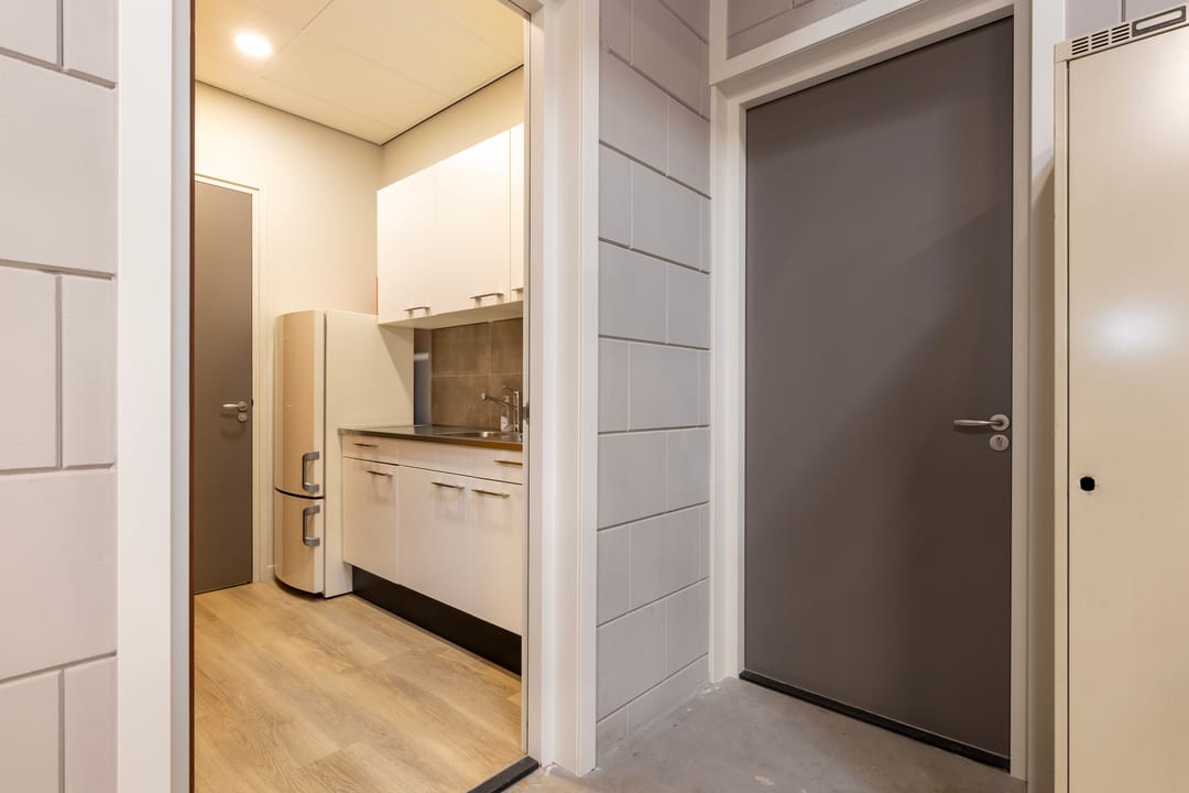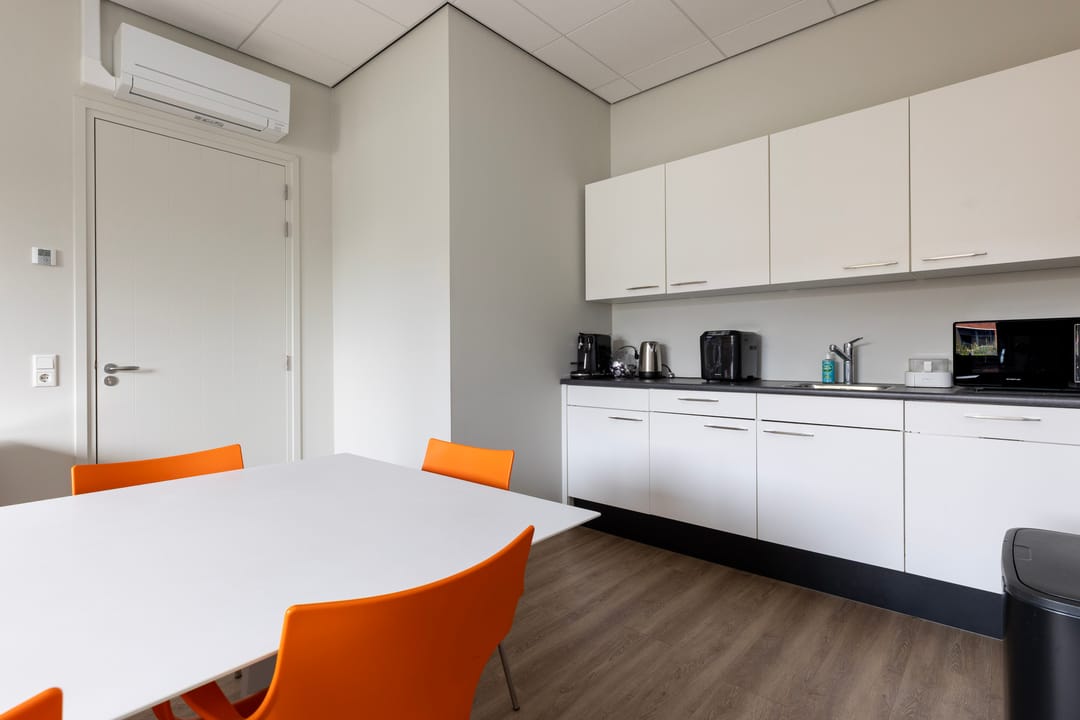 Via de entree is de kantine/kantoorruimte (circa 20,9 vierkante meter) op de begane grond bereikbaar. Hier is ook een pantry aanwezig met een spoelbak en een vaatwasser. Tevens is hier airconditioning aanwezig.