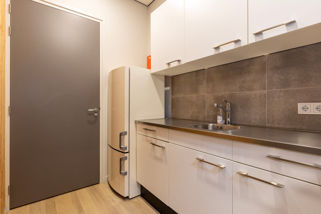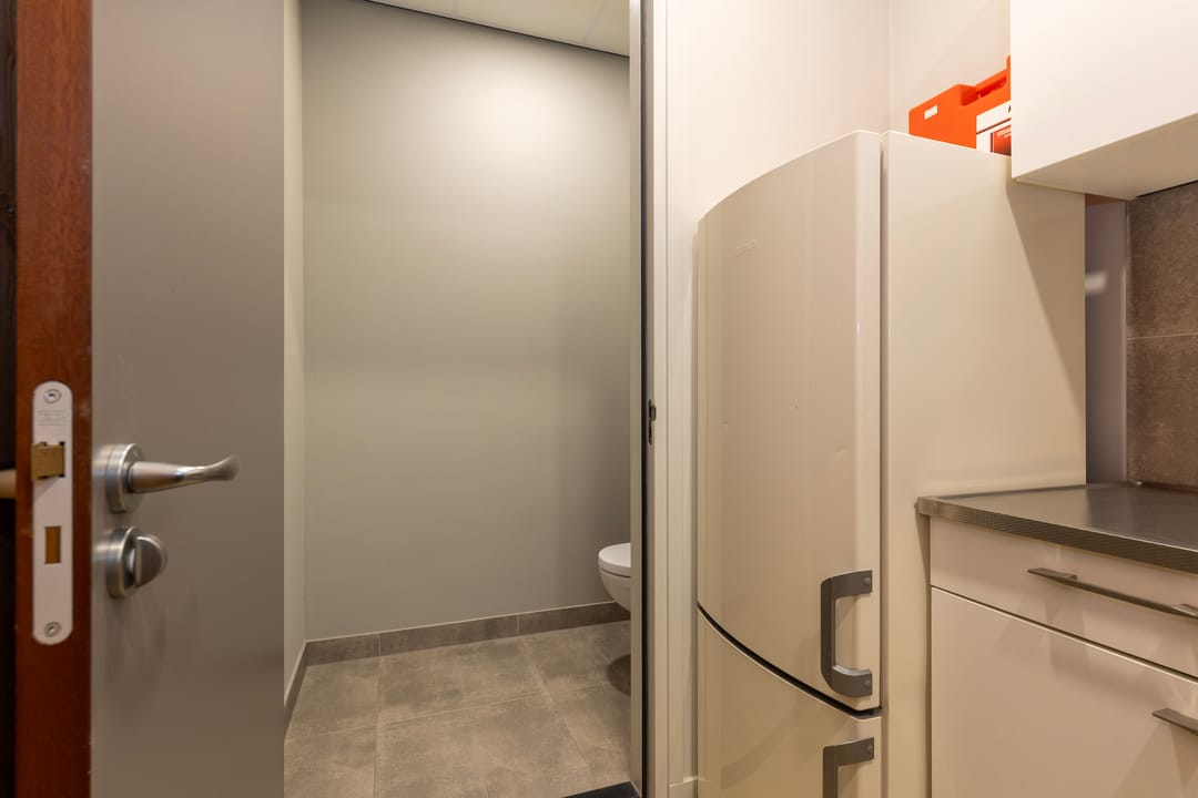 De bedrijfsruimte beschikt over een pantry met een spoelbak. Tevens is er een losse koel- en vriescombinatie aanwezig. Ook is er toiletruimte aanwezig.