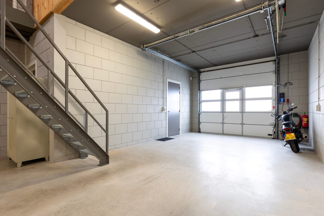 - Overheaddeuren, betonvloer, toilet, pantry, airconditioning en te openen ramen
