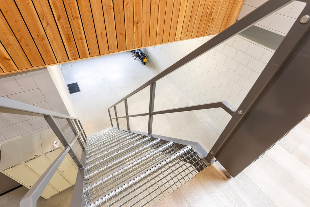 De verdieping beschikt over een vloerverwarming. Er ligt een pvc-vloer met uitzondering van de kantoorruimtes (hier ligt vloerbedekking) en de toiletruimte/douchevoorziening (hier ligt een tegelvloer).