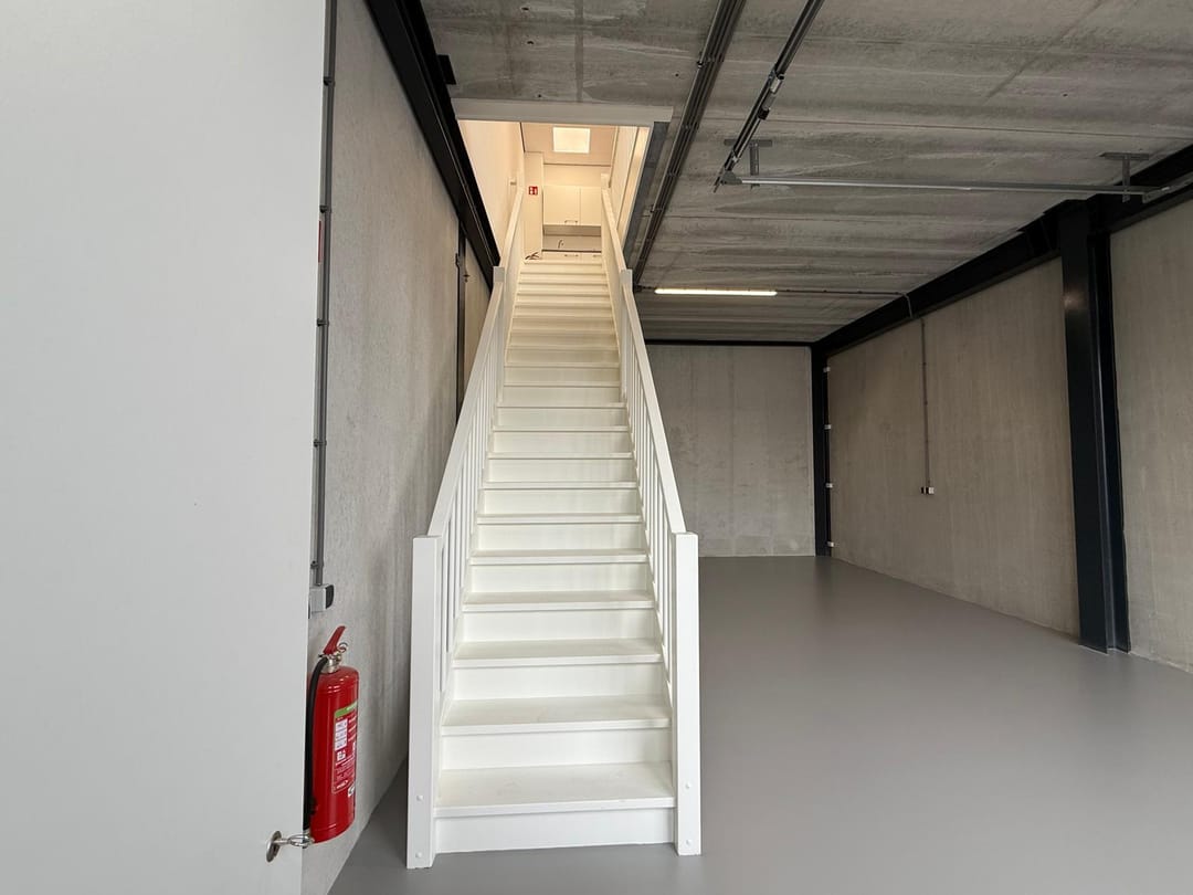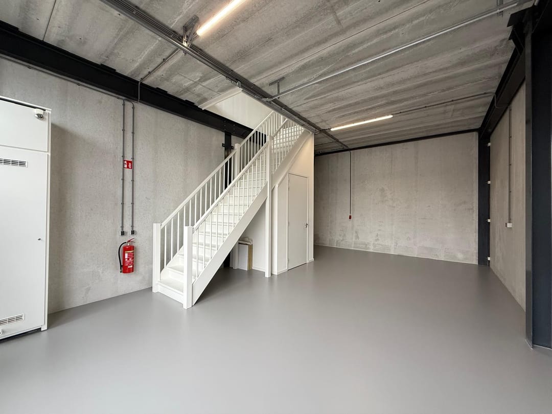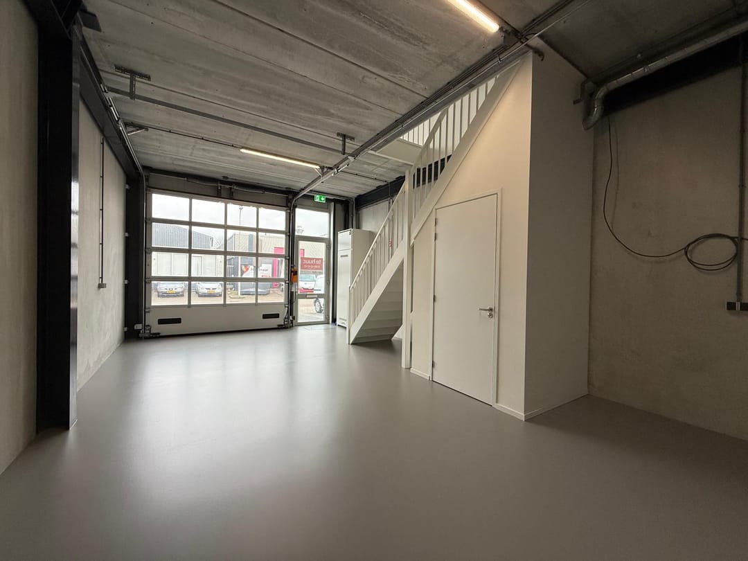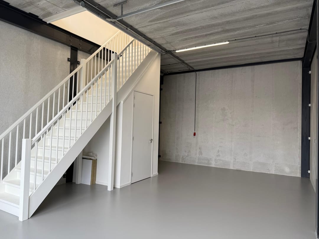 - Overheaddeuren, betonvloer, toilet en pantry