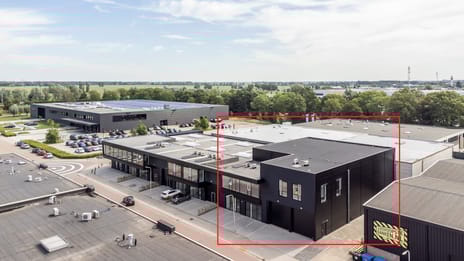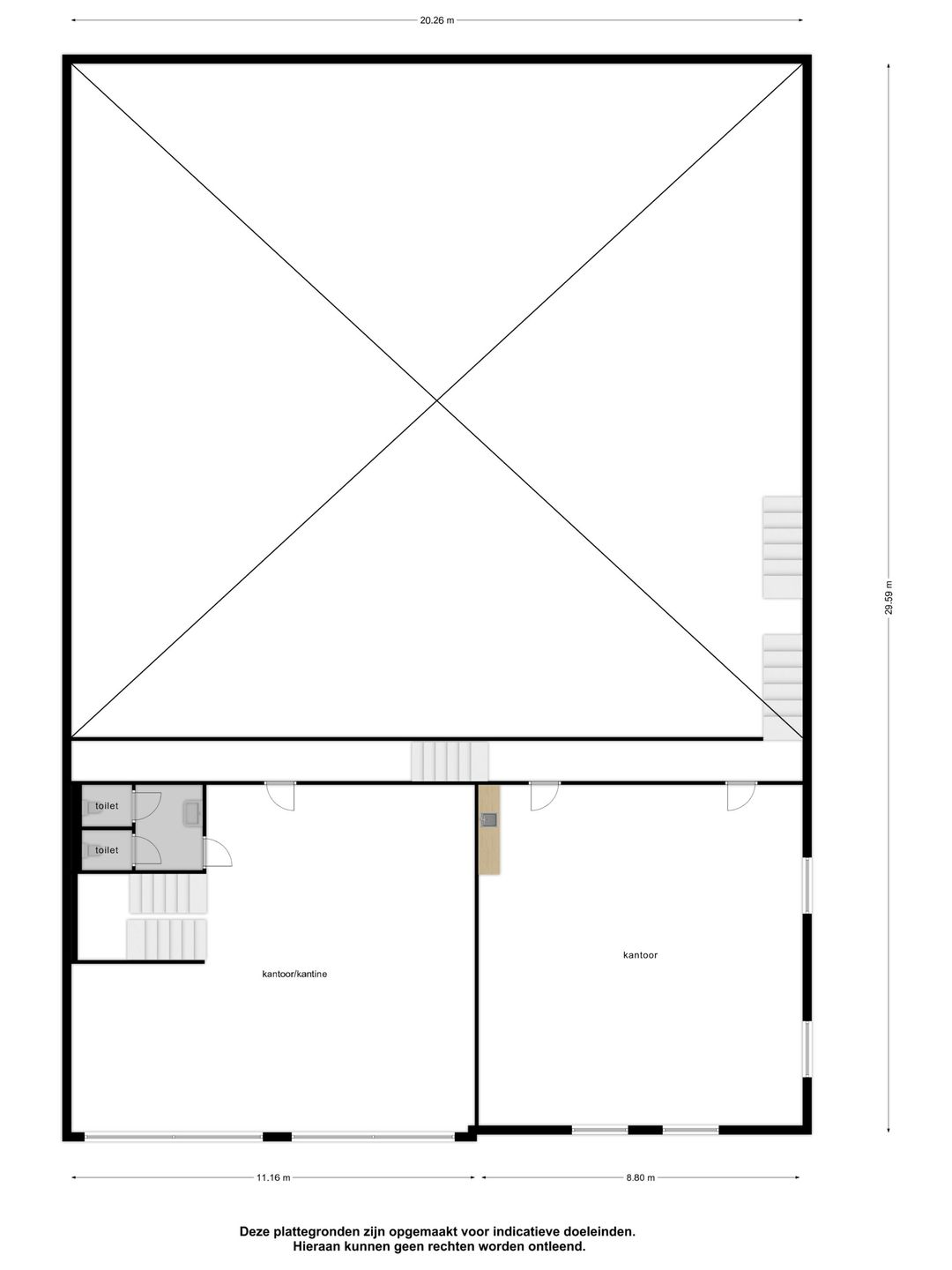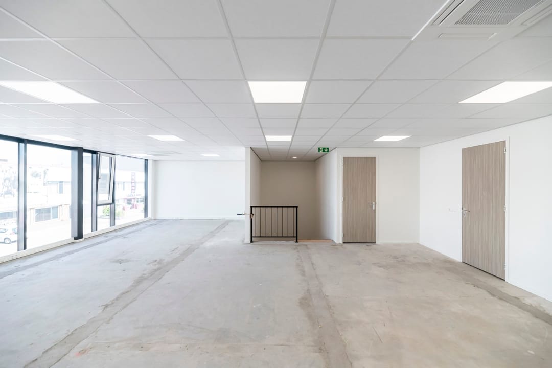 - Indeling verdieping: twee kantoorcompartimenten, waarvan één met toiletgroep, die door middel van een loopbrug in de bedrijfsruimte met elkaar verbonden zijn;