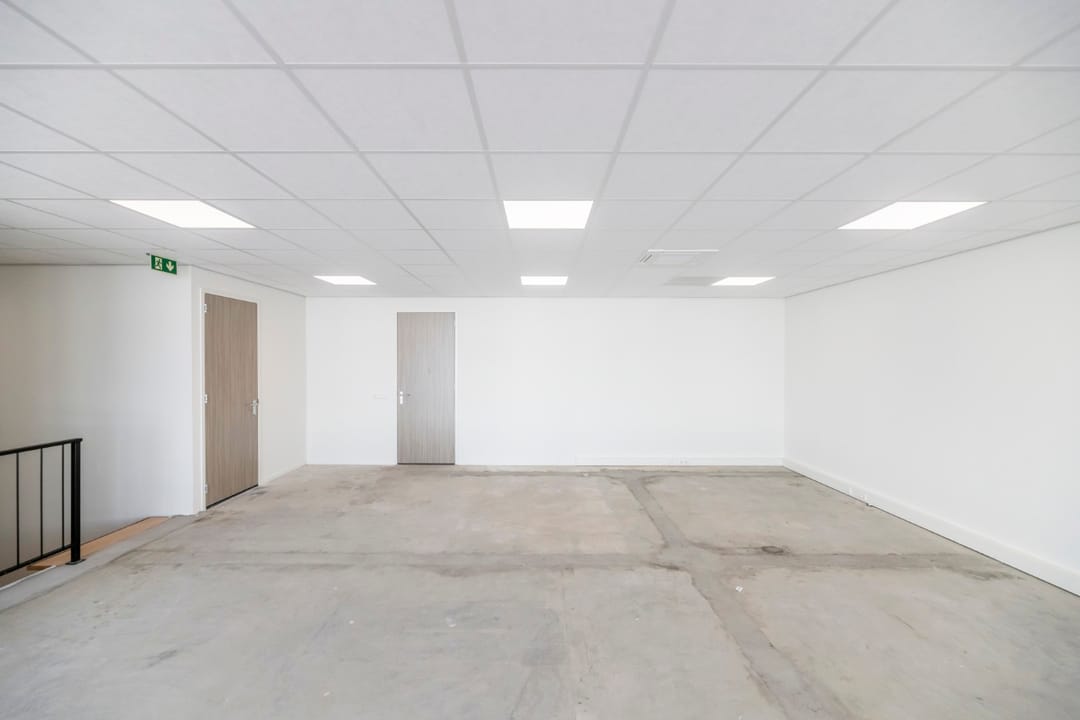 De bedrijfs-/kantoorruimte bestaat uit kantoorruimte verdeeld over 2 bouwlagen welke o.a. voorzien is van wanden afgewerkt met gesausd glasweefsel, systeemplafonds met ledverlichting, verwarming en koeling door middel van warmtepomp-splitsysteem en keurig sanitair. De bedrijfsruimte is zeer functioneel van opzet en beschikt o.a. over een onderheide betonvloer en een vrije hoogte van merendeels circa 9 meter en elektrische overheaddeuren in de voorgevel.