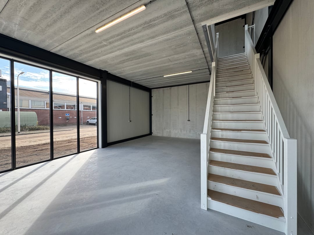 De begane grond is o.a. voorzien van een monoliet afgewerkte betonvloer, een handmatig bedienbare aluminium harmonicadeur en separate loopdeur en is derhalve uitermate geschikt voor gebruik ten behoeve van showroom-/opslagdoeleinden. De verdieping beschikt over o.a. een betonnen vloer en ruime daglichttoetreding door middel van de raampartijen in zowel de voor- als kopgevel en is multifunctioneel inzetbaar en kan worden ingericht als leslokaal, bedrijfsruimte, showroom of kantoorruimte.