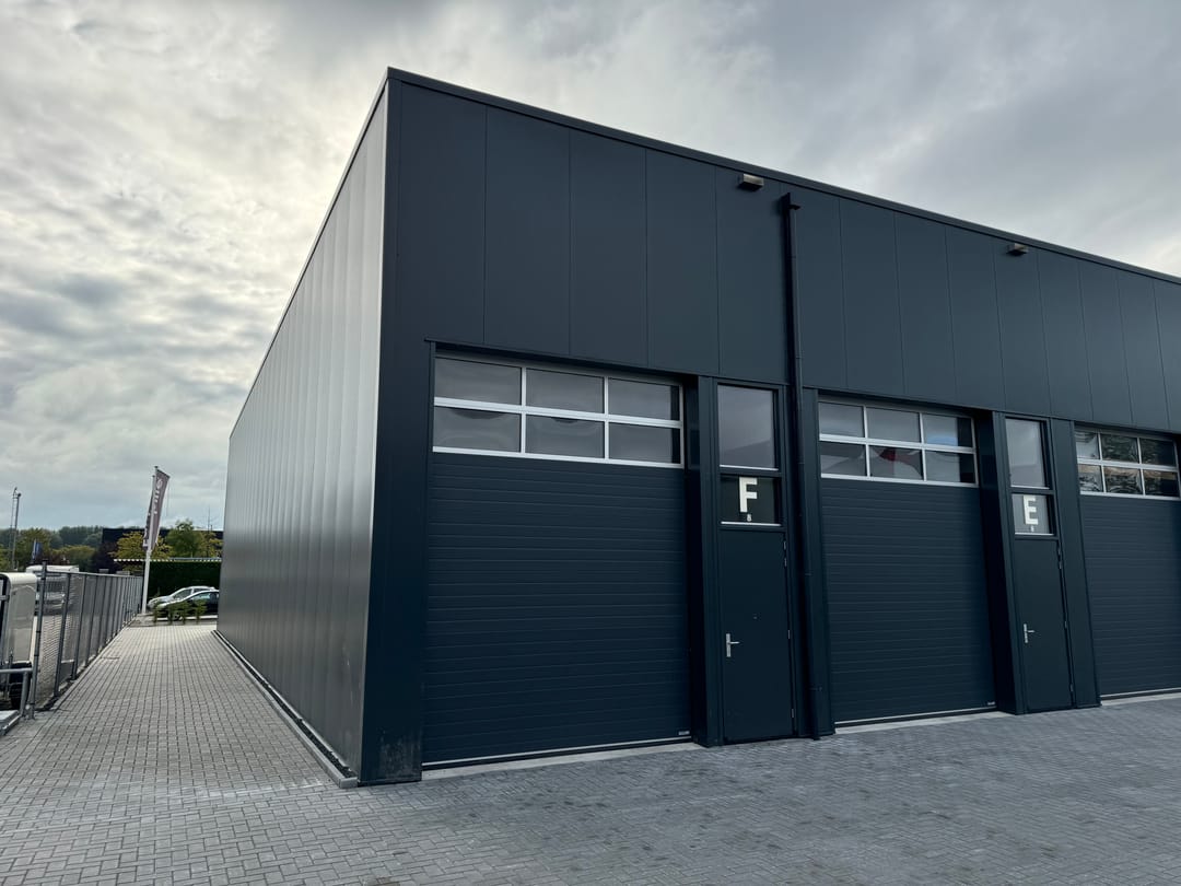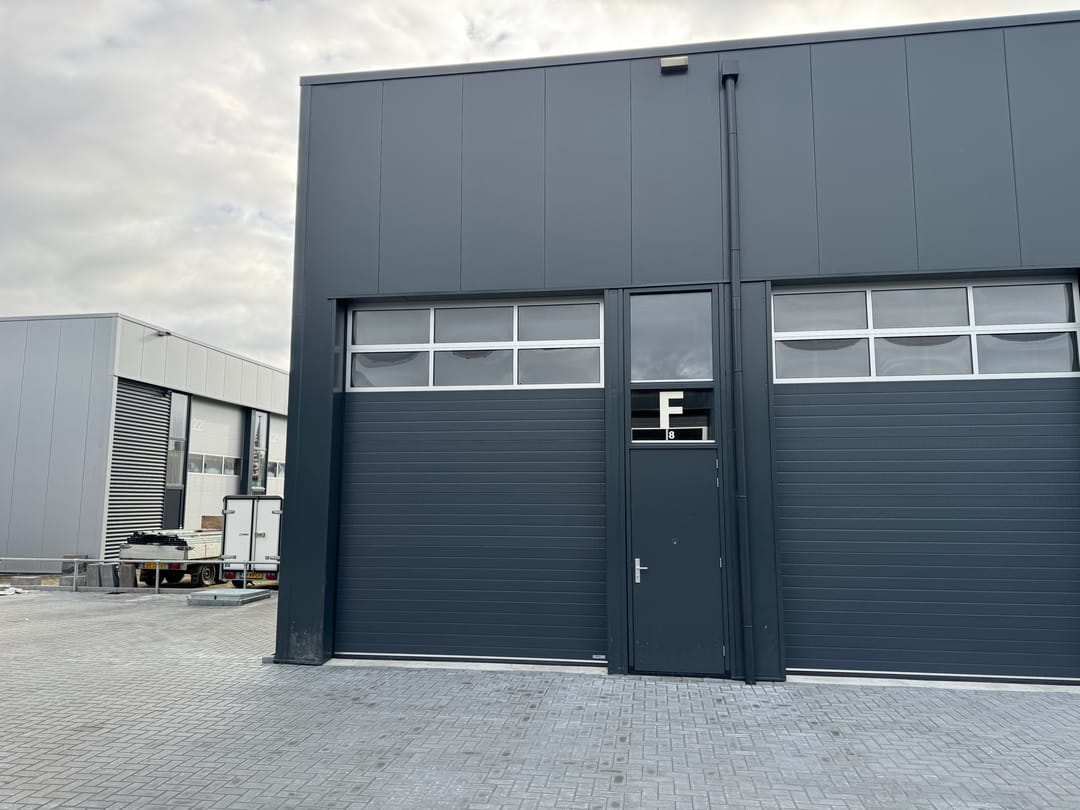 - separate loopdeur naast elektrisch bedienbare overheaddeur (ca. 3,2 m1 breed en 4,2 m1 hoog)