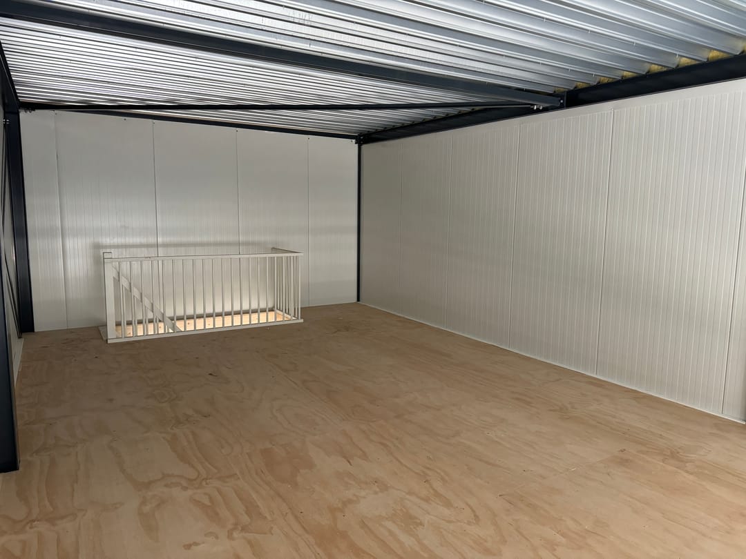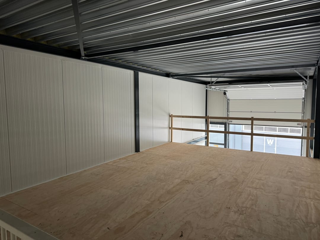 De unit heeft een stramienmaat van 5,00 meter en is ca. 6 meter hoog, voorzien van een eigen entree en een elektrisch bedienbare overheaddeur, meterkast, een betonvloer en een houten verdiepingsvloer.