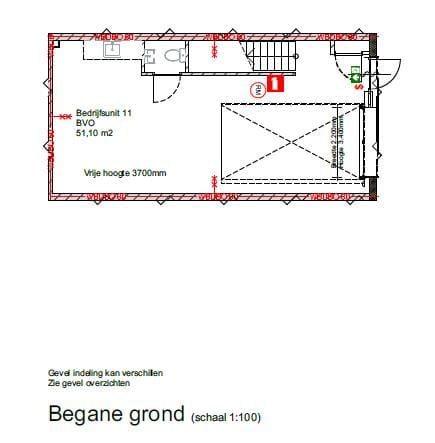 Begane grond: ca. 51 m² bedrijfsruimte (vrije hoogte ca. 3,70 m)