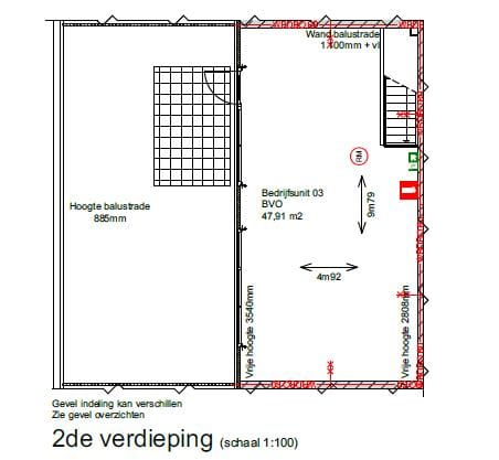 De vergunning voorziet in ‘lichte industrie’. Indien de verdieping als kantoor gebruikt wordt, dient koper dit met de gemeente af te stemmen en de installaties aan te passen. De verantwoordelijkheid voor het gebruik ligt volledig bij de koper.